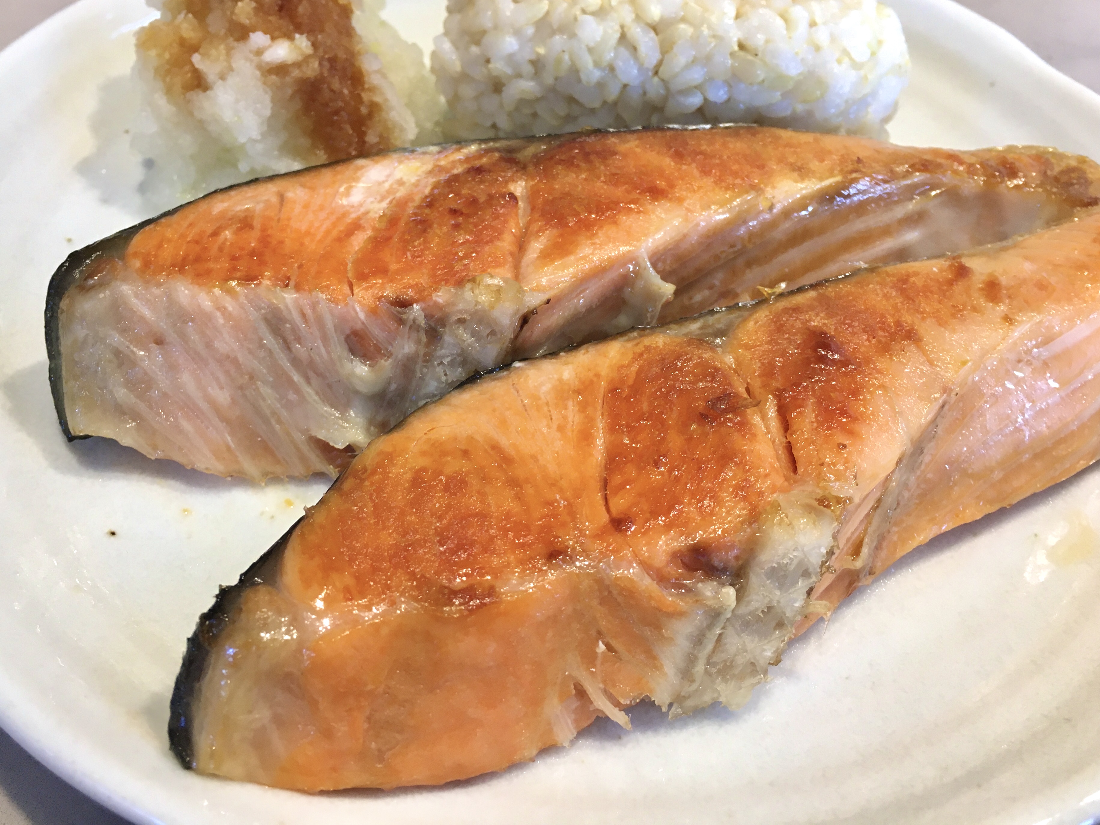 皮もパリっと焼けて、肉厚なので身もやわらかく、塩加減もちょうど良かったです。食べ応えがあり、ご飯がすすみました!焼き立ての紅鮭、最高です。