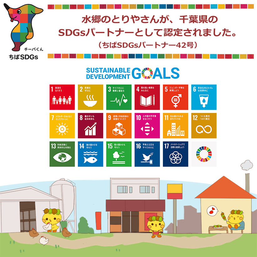 小さな鶏肉店でもできること、そして、これから取り組むべきことを明確にし、 持続可能な開発目標の達成を目指してまいります!そして、支えてくださるお客様とのパートナーシップを大切にし、そのパートナーシップを、より一層深めていけるよう、精一杯、努力してまいります。