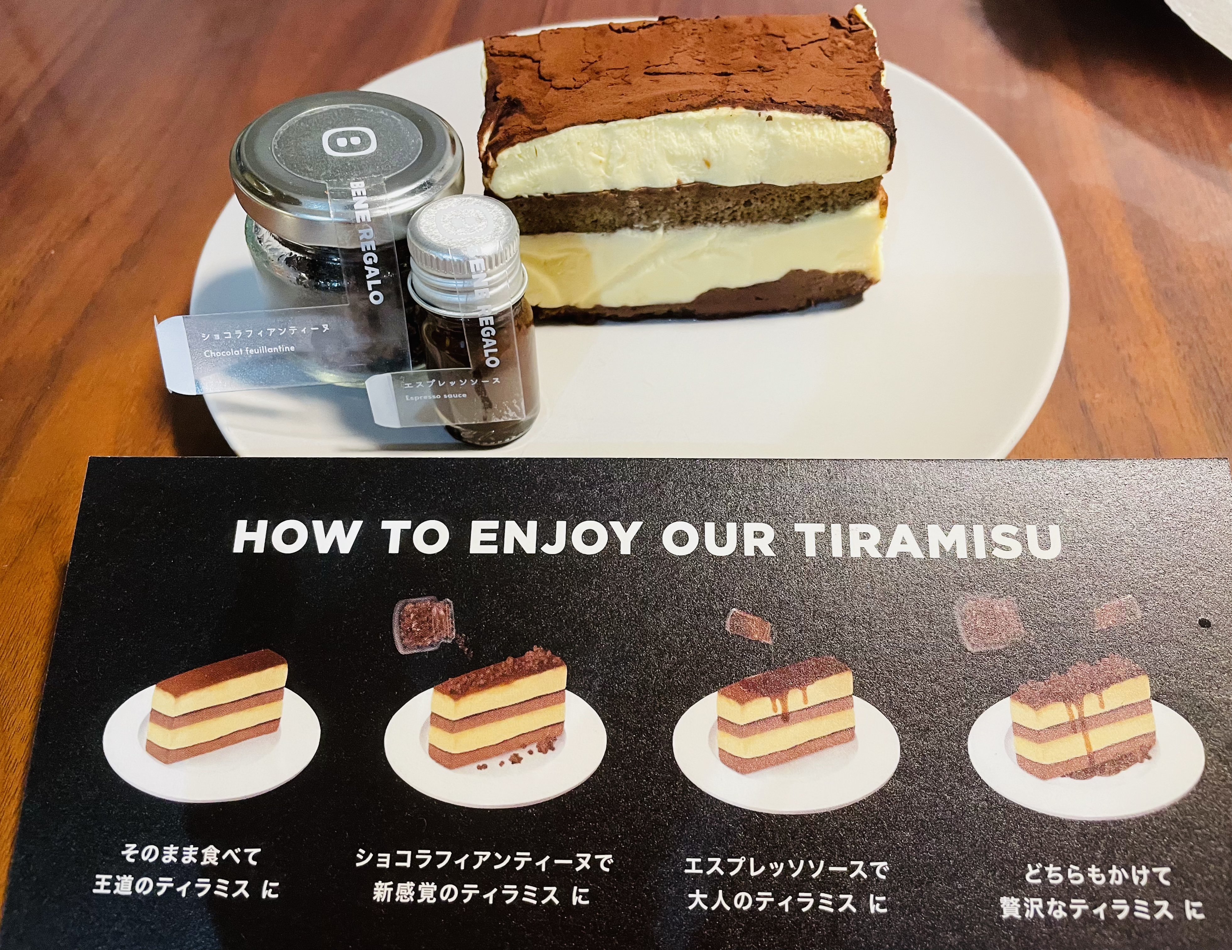 私は甘めのティラミスが好きで、家族でシェアする時にそれぞれの好みのお味で楽しめるのがとってもありがたいです☆