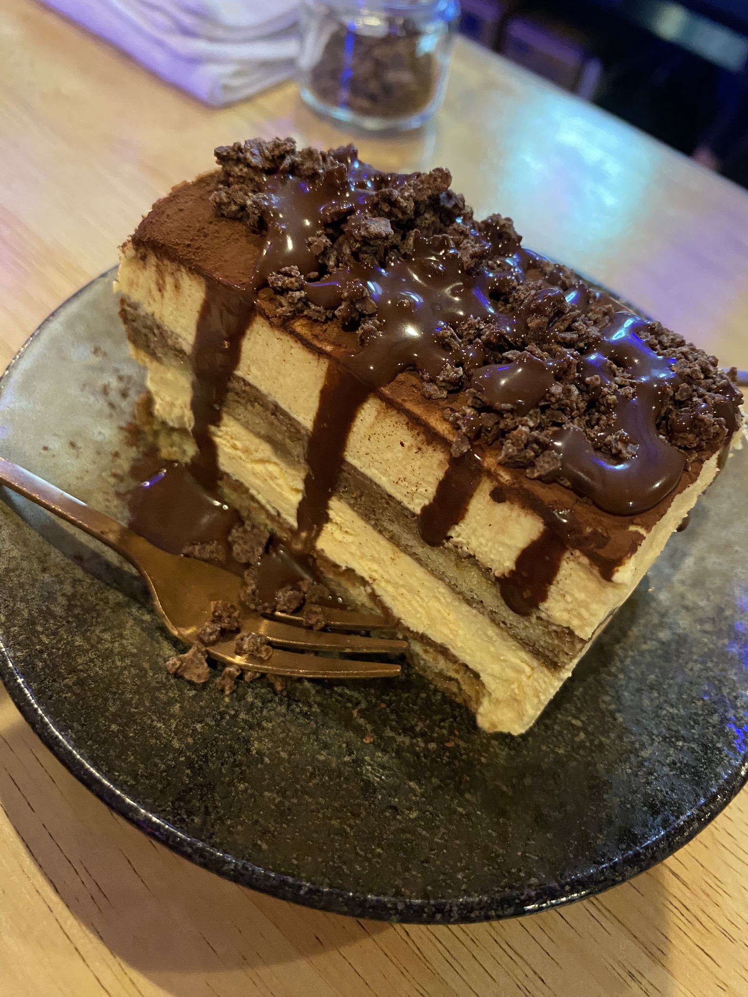 チョコレートフィアンティーヌとエスプレッソソースがついていて、程よい苦味を足したい方はソースをかけたり、ティラミスのなめらかさにサクサク食感もプラスで楽しみたい方はフィアンティーヌをプラスすることが出来ます。