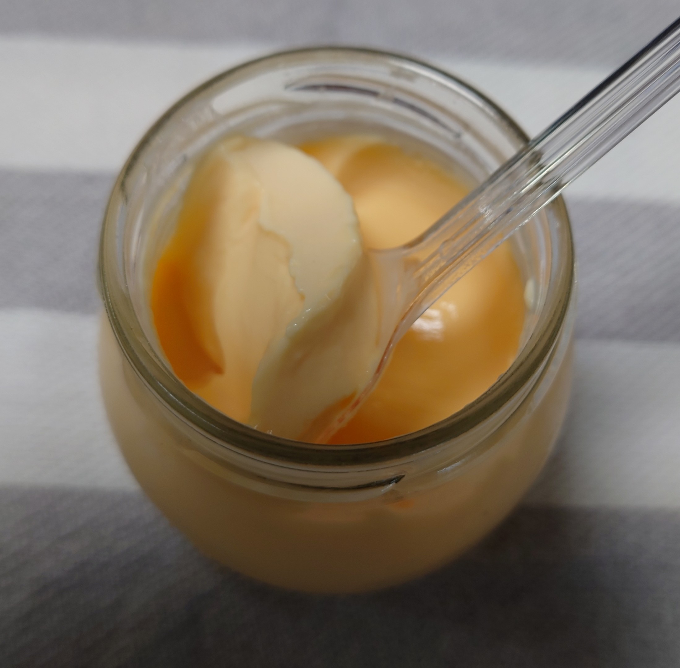 次はカラメルをかけて食べてみます。これがまたさらに美味しい!!カラメルの程よい苦味とプリンの優しい甘みが絶妙なハーモニーです。