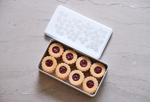 徳島の最高級和三盆糖と北海道産の四つ葉バターを使った優しい味わいのクッキーで、女峰を使った自家製のいちごジャムをサンド。すべて手作りのいちごジャムクッキーです。いちごのフレッシュさを残したジャムと、しっとり食感で優しい甘さのクッキーがマッチしています。