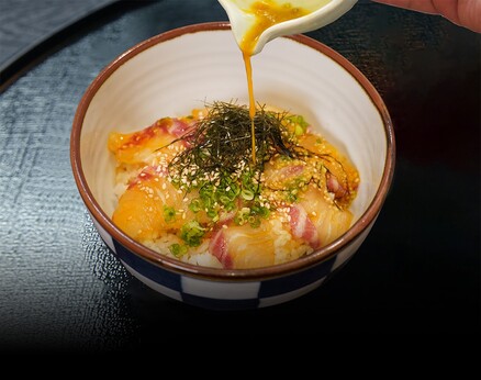 卵黄をタレに入れ、そのタレに解凍した鯛の刺身を絡めてごはんにのせるだけ!