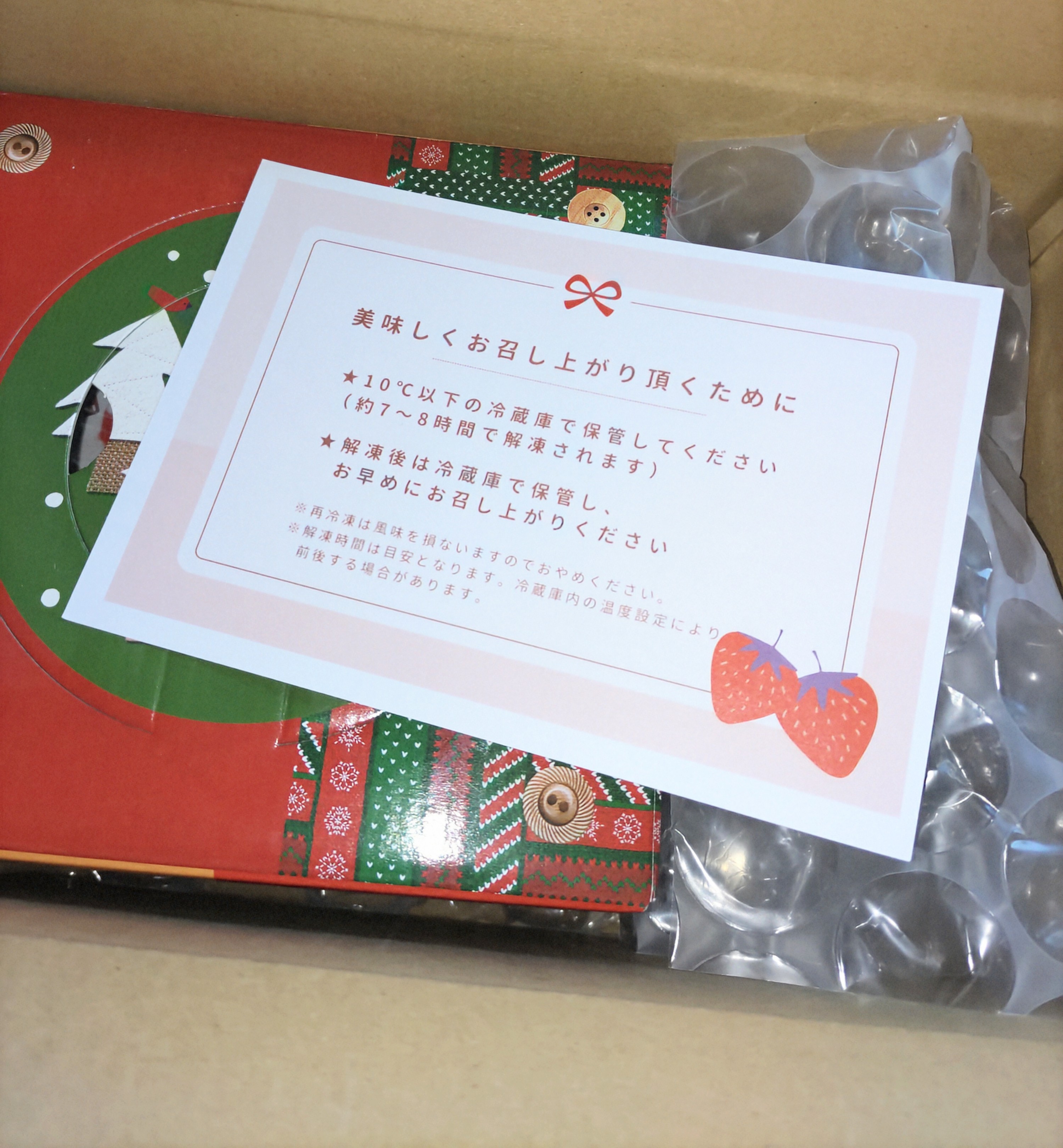 早く食べたい気持ちを抑えて冷蔵庫で解凍し、家族でいただきました。
