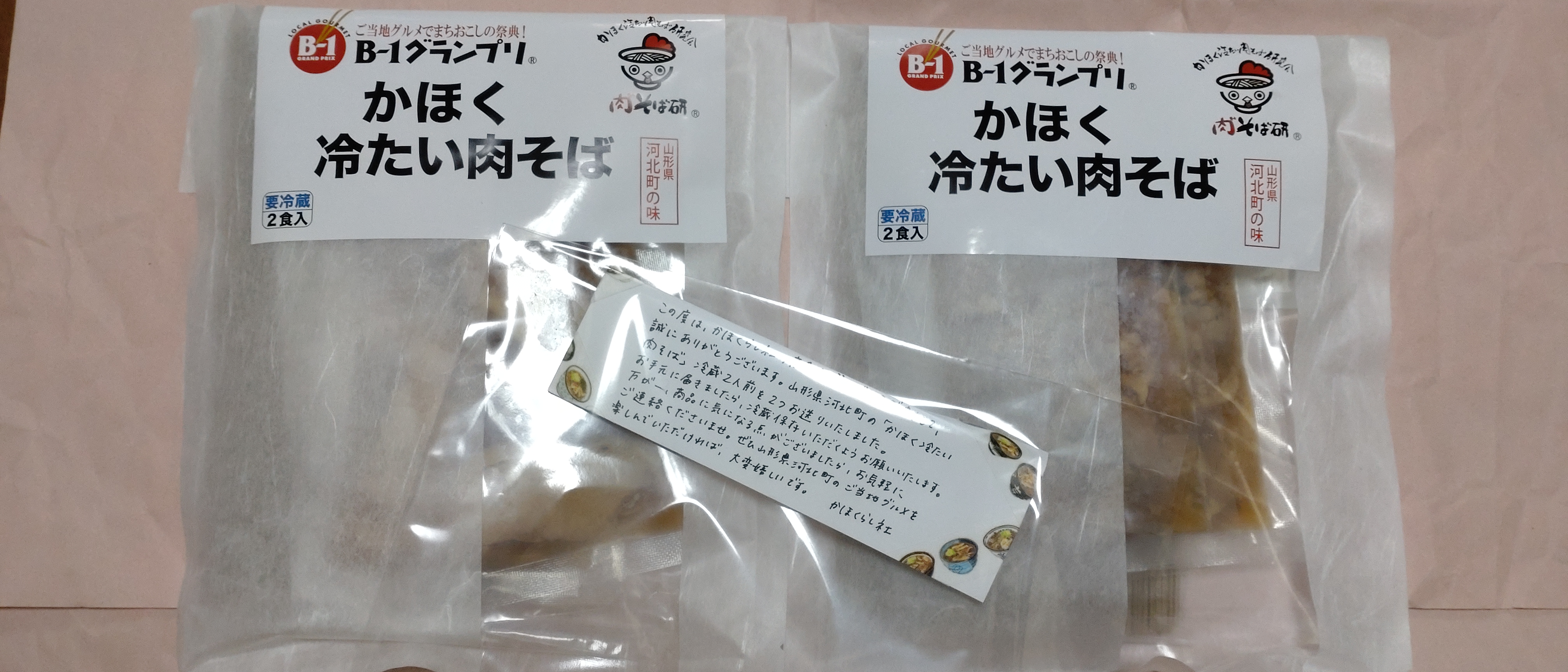 山形県を代表するご当地グルメ「かほく冷たい肉そば」です。親鶏を使用したコクのある醤油ベースの出汁に、強いコシのある蕎麦、コリコリした親鳥チャーシューを合わせた冷たい蕎麦。山形県河北町発祥で、B1グランプリで入賞してから全国で知名度が上がりました。現在でも県内外から多くの観光客が「かほく冷たい肉そば」目当てに河北町へ訪れています。夏だけでなく冬でも地元では「冷たい肉そば」が定番。たっぷり4人前が冷蔵で届くので、郷土食が自宅で楽しめます。