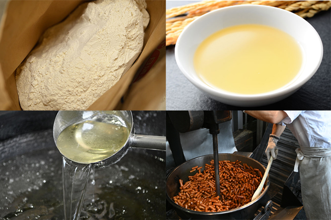 だからこそ素材ひとつひとつの質や、手間隙を惜しまない労力と熟練の技術が必要となります。きめ細やかな生地作りから始まり、上質な国産の米油を使用した三度揚げ、最上級の上白糖を煮詰めた飴を生地に纏わせる。