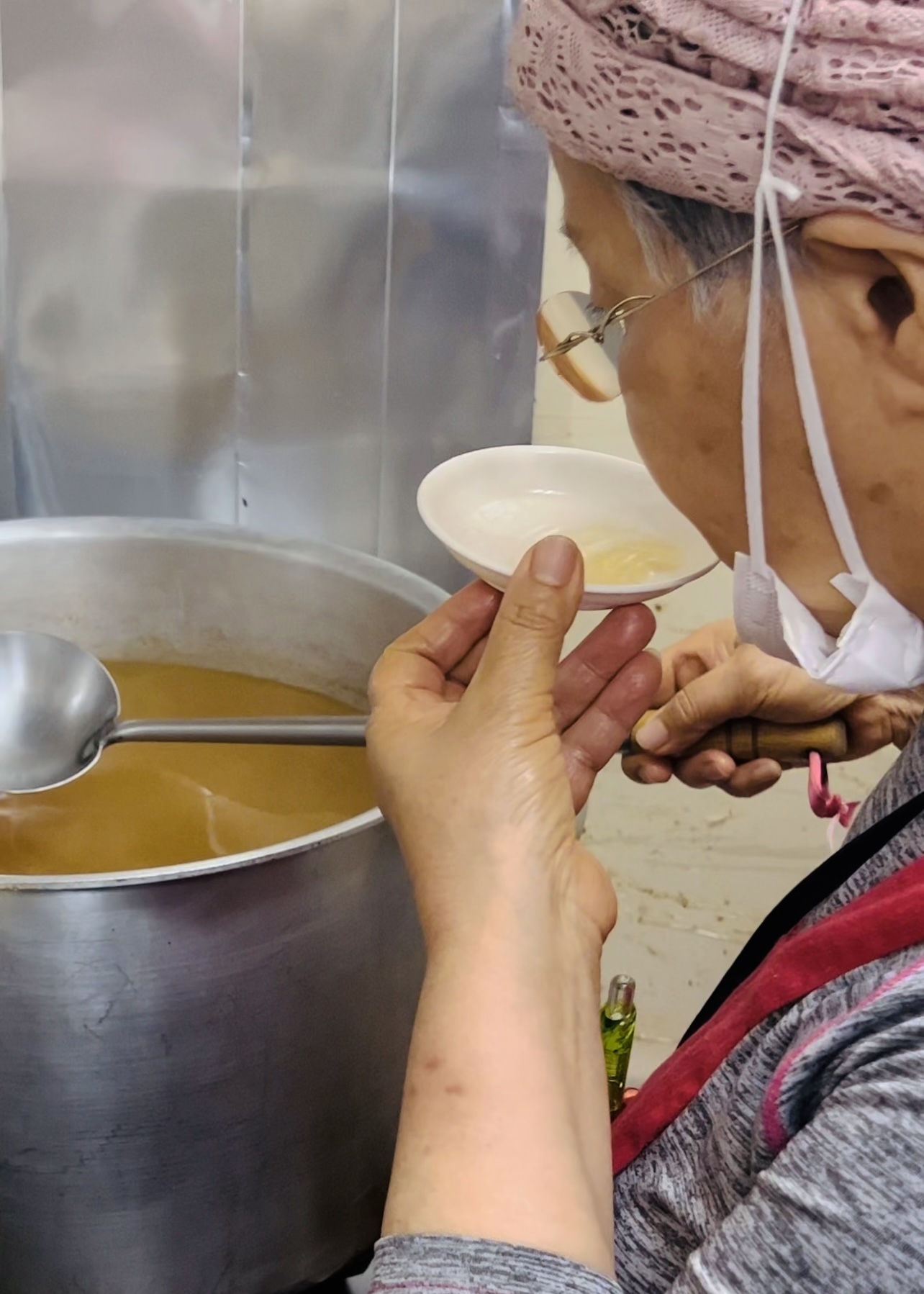 『にしんすに』の沖縄そばと言えば…もちろん【スープ】!3種類の豚肉から抽出した豚骨ダシをベースに国産の昆布と鰹(カツオ)節で風味とうま味をプラスした【豚骨鰹ダシ】。口の中で広がるスープが味の決め手です。さらに、絶品のスープが細めの沖縄そば麺と相性抜群!!付け合わせには、型崩れをしないように5時間かけて煮込む【三枚肉】と【ソーキ】。味付けには特製の【旨味ダレ】と伊江島産の【沖縄黒糖】を使用し、まろやかでコクのある味わいに仕上げました。トロトロ三枚肉、ドでかソーキには昆布と一緒に【旨味ダレ】をかけて完成です。にしんすにの【沖縄そば】をどうぞ最後までお楽しみください♪