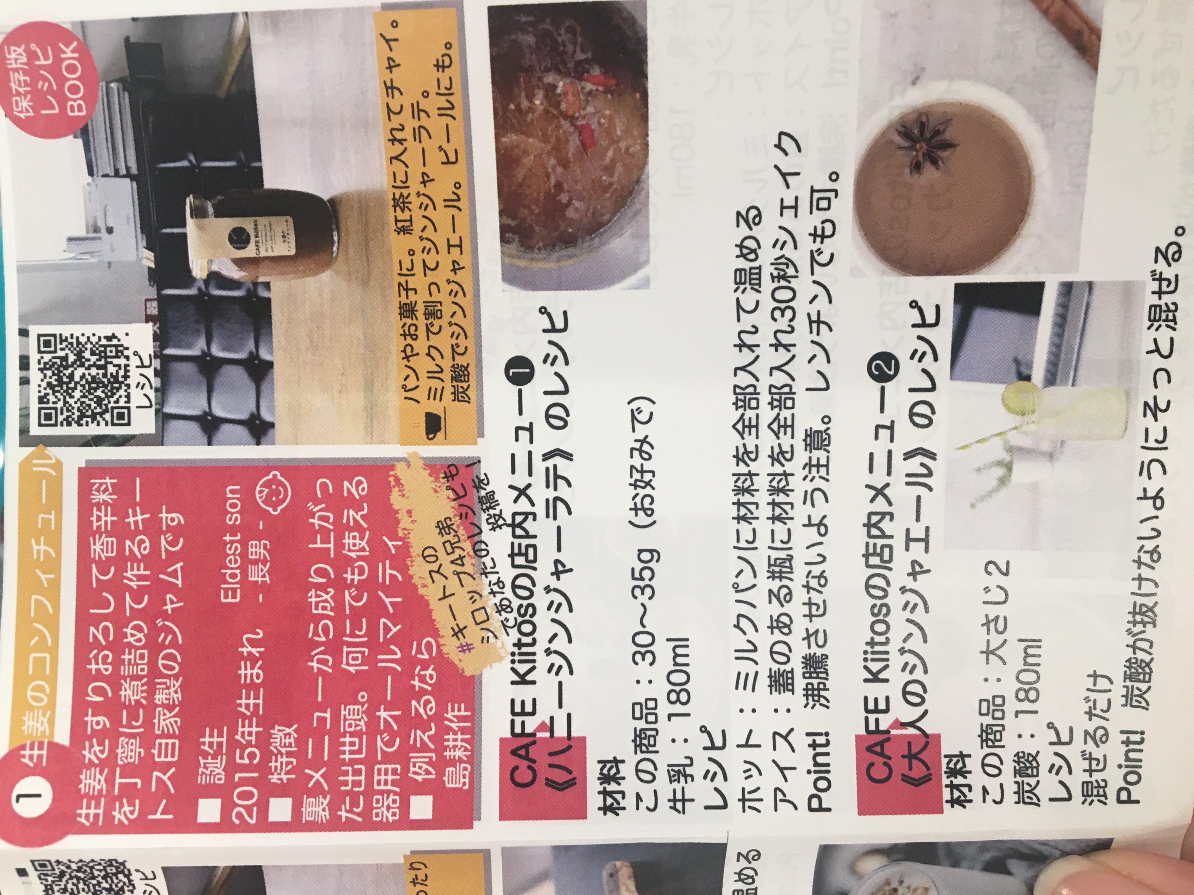 「生姜のコンフィチュール」、「紅茶のシロップ」、「ローズマリーのシロップ」、「ミントのシロップ」です。