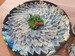 ラップをはずすと綺麗な薄造りのふぐ刺し。