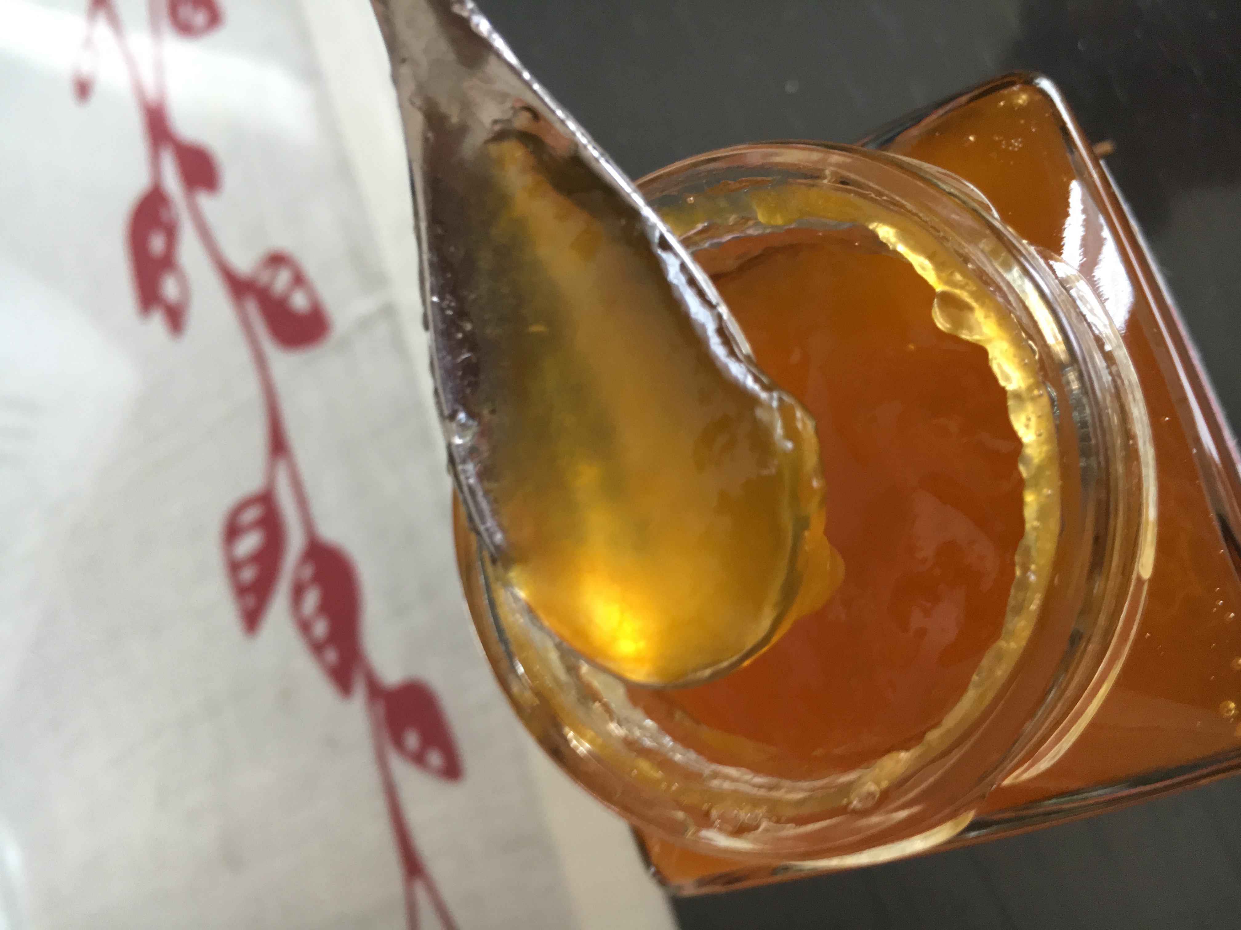 取り出した際、瓶の中をみたら、サラサラしてる感じがしたので、 ジャム?ジャムだよね?と半信半疑になりましたが・・・。翌朝の朝食で早速いただきました。