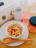 グラノーラ専用の林檎。りんごの香りとお味が加わって、フルーツグラノーラの食感と合うと思いました。フルーツグラノーラのフルーーツ感とはちみつの甘味がプラスされて、とても美味しくなりました。