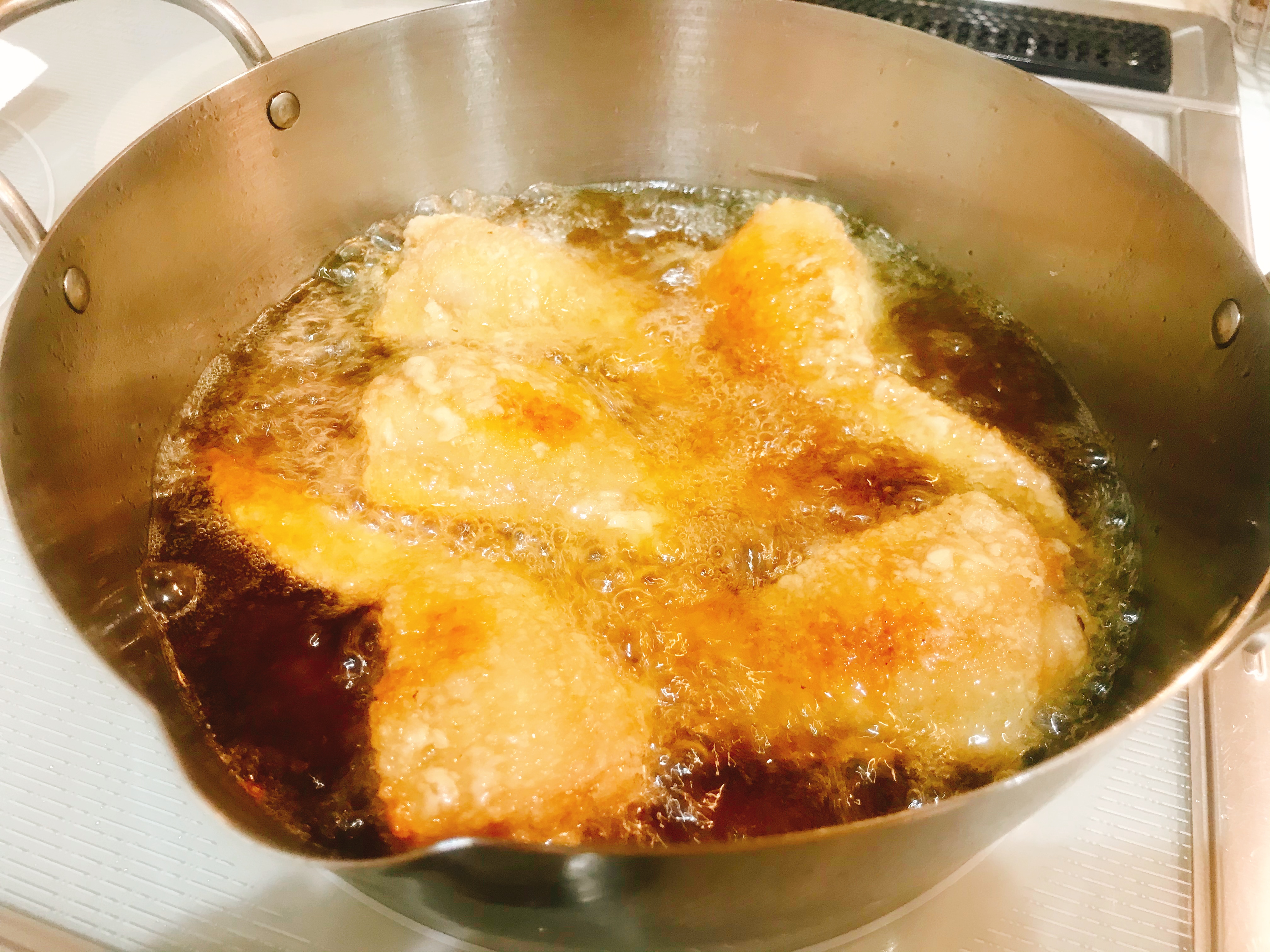 といっても、片栗粉をまぶして4〜5分揚げるだけ!!