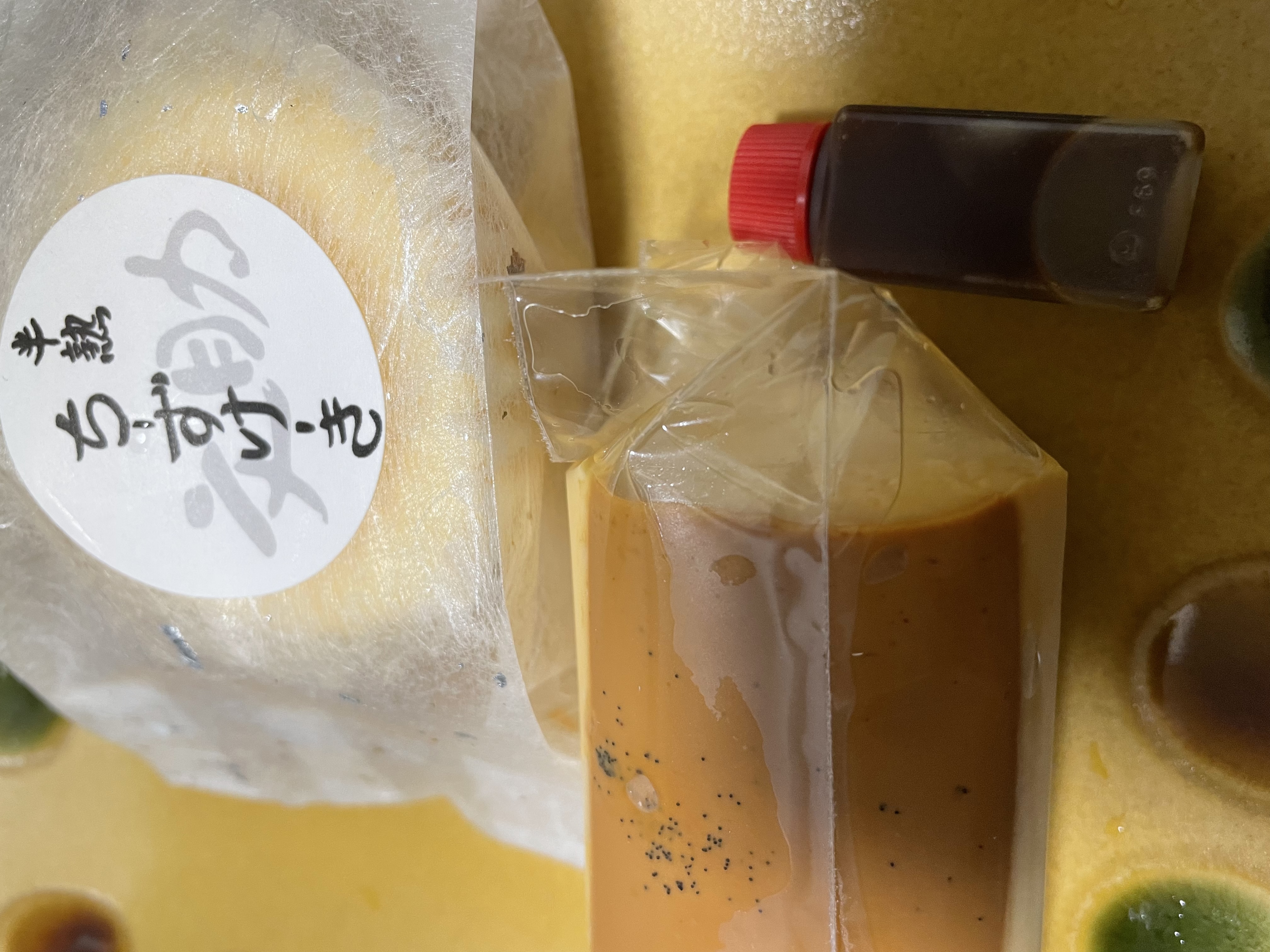 別添えのカラメル、見た目しっかりしていますが、食べるとソフト!