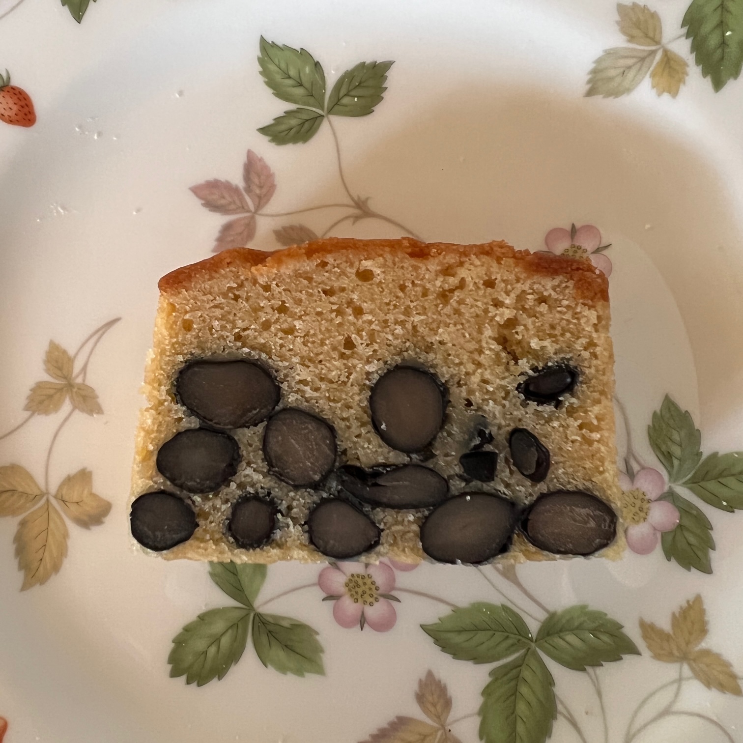 大粒の艷やかな丹波黒豆がケーキの下側に散りばめられています。