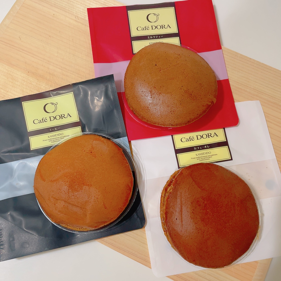 開けてみると、コーヒー味・カフェオレ味・ミルクティ味の3種類のどら焼きが入っています。