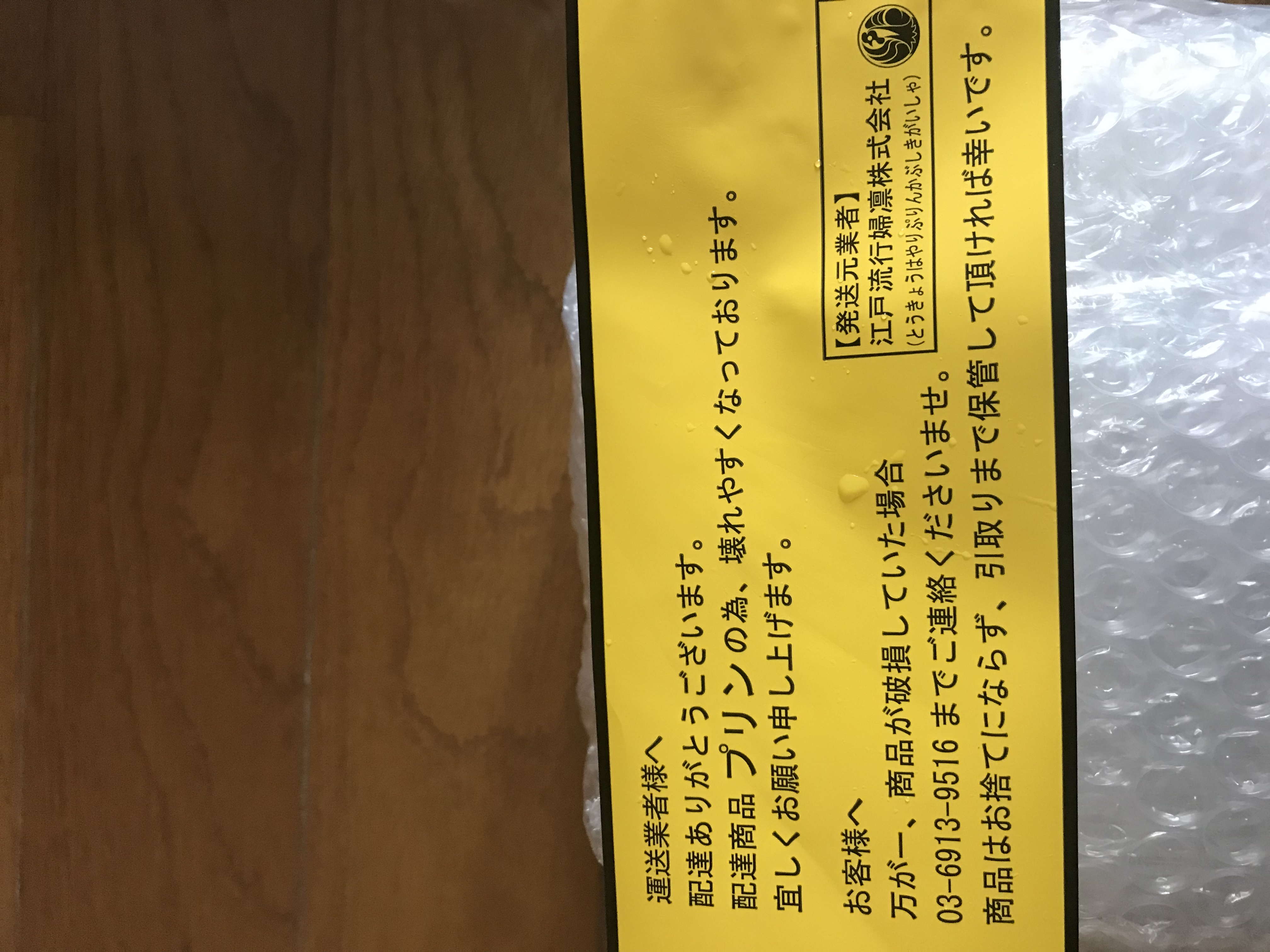 下積み厳禁、なまもの、割れ対応にプチプチの緩衝材が何重にも丁寧に梱包されて、なおかつ、お店独自で宅配の方用のプリンなので慎重な取り扱いお願いします、という趣旨のシールまで貼り付けされていて、とても丁寧さや想いが込められた体裁でした。ギフトにするときにこの梱包でしたらとても安心です。