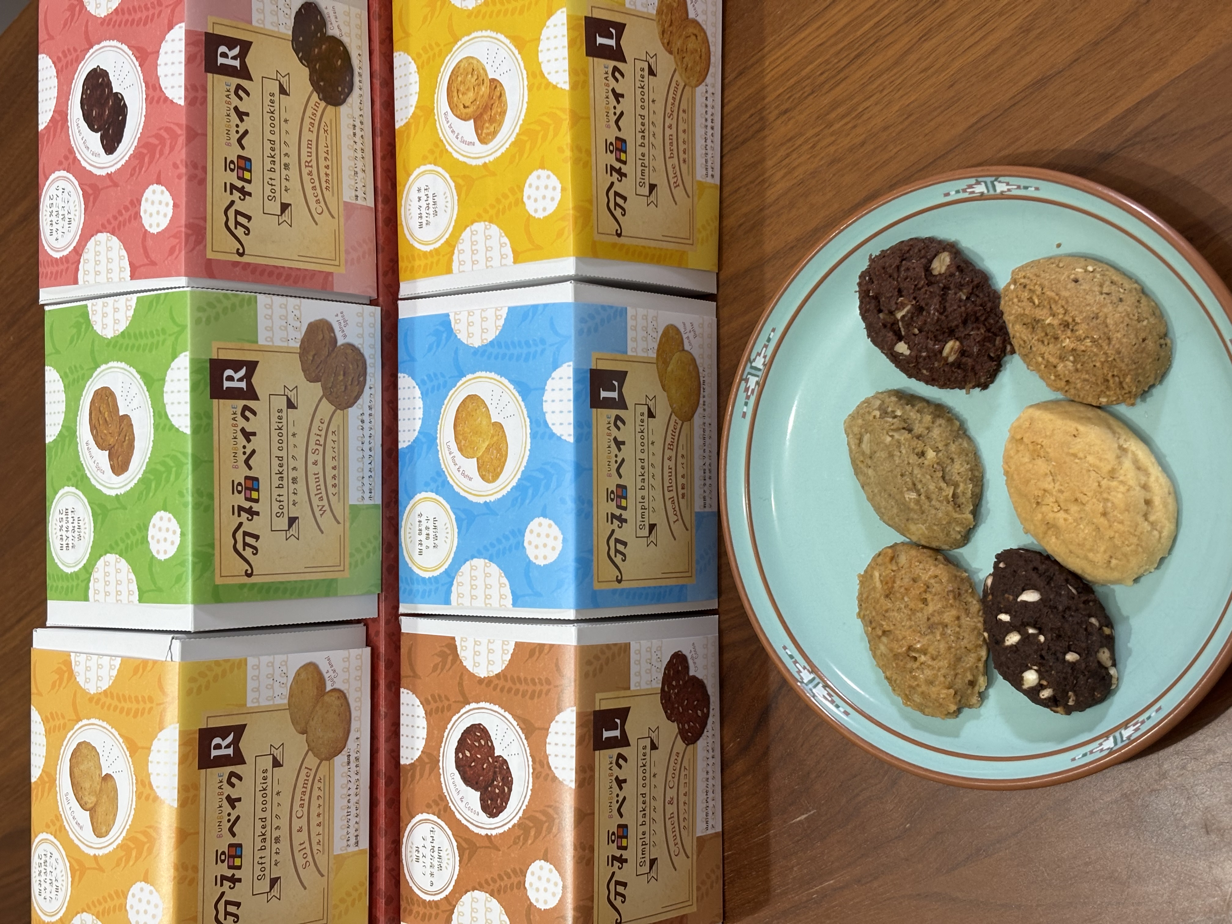 ソルト&キャラメルとくるみ&スパイスとカカオ&ラムレーズンは、ソフトな食感のクッキーで、ソルト&キャラメルは、キャラメルの味が少し強めで、くるみ&スパイスは、くるみとスパイスのバランスが良く少し大人な感じのクッキーで、カカオ&ラムレーズンは、ほんのりラムレーズンの洋酒の香りがクッキーを食べていると鼻から抜けておいしかったです。