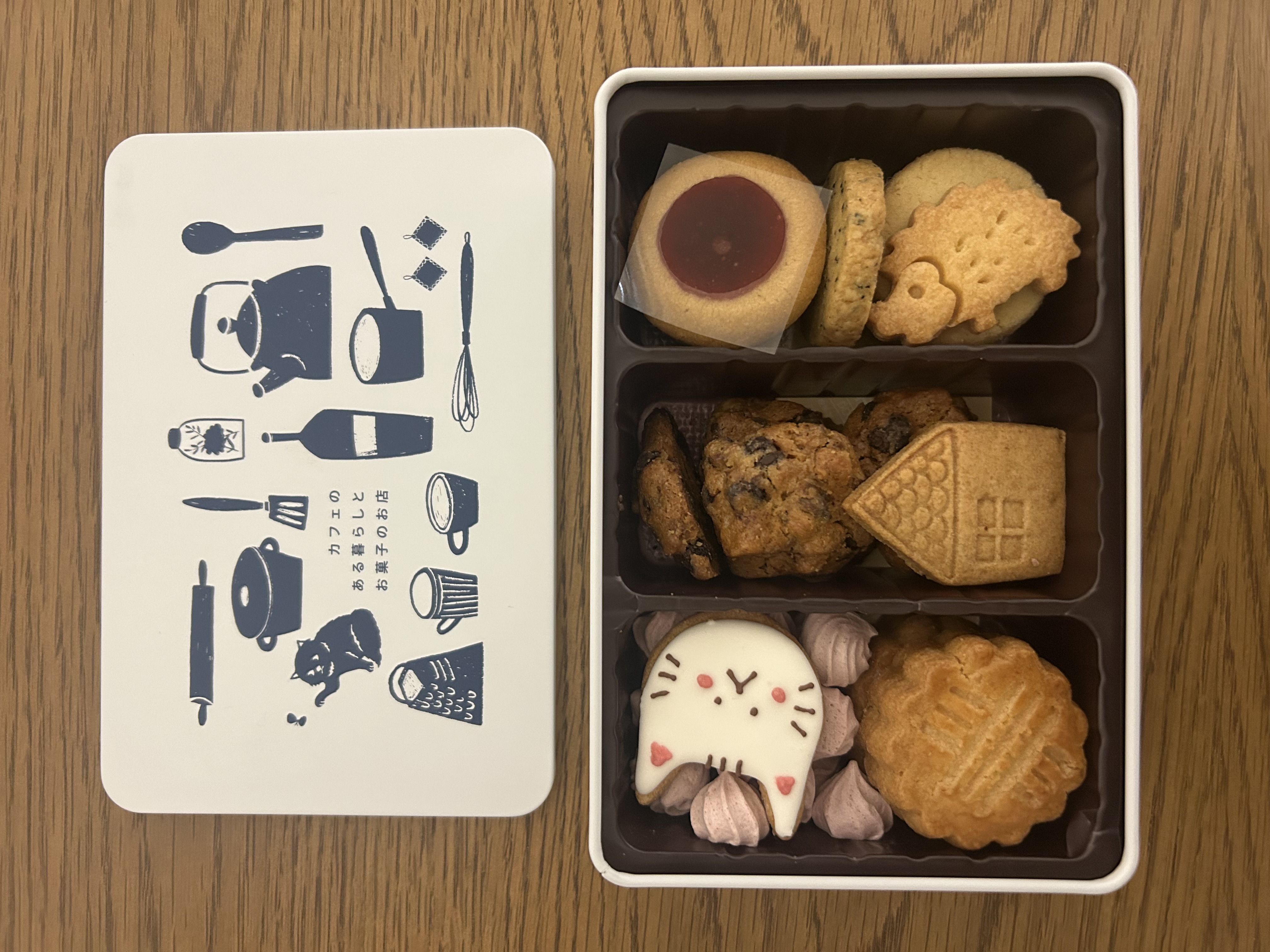 東京 新宿にあるカフェが作った「クッキー缶」です。商品名の通り、可愛らしいハリネズミ型抜きクッキーやネコのアイシングクッキーをはじめ、その他、おうちの型抜きクッキー、紅茶クッキー、チョコとアーモンドのクッキーなど8種類のバラエティ豊かなクッキーが詰まっています。印象的な缶入りなので、贈り物にもおすすめです。