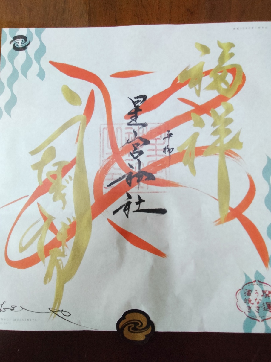御朱印を集めています。自分の御朱印帳におさめようと楽しみにしていたのですが、印刷の大きな包装紙タイプだったのですね。それがちょっと残念でしたが、このうなぎとの出会いを機会に、実際に神社にも詣でて本物をいただこうと決心できました。逆に楽しみができました!