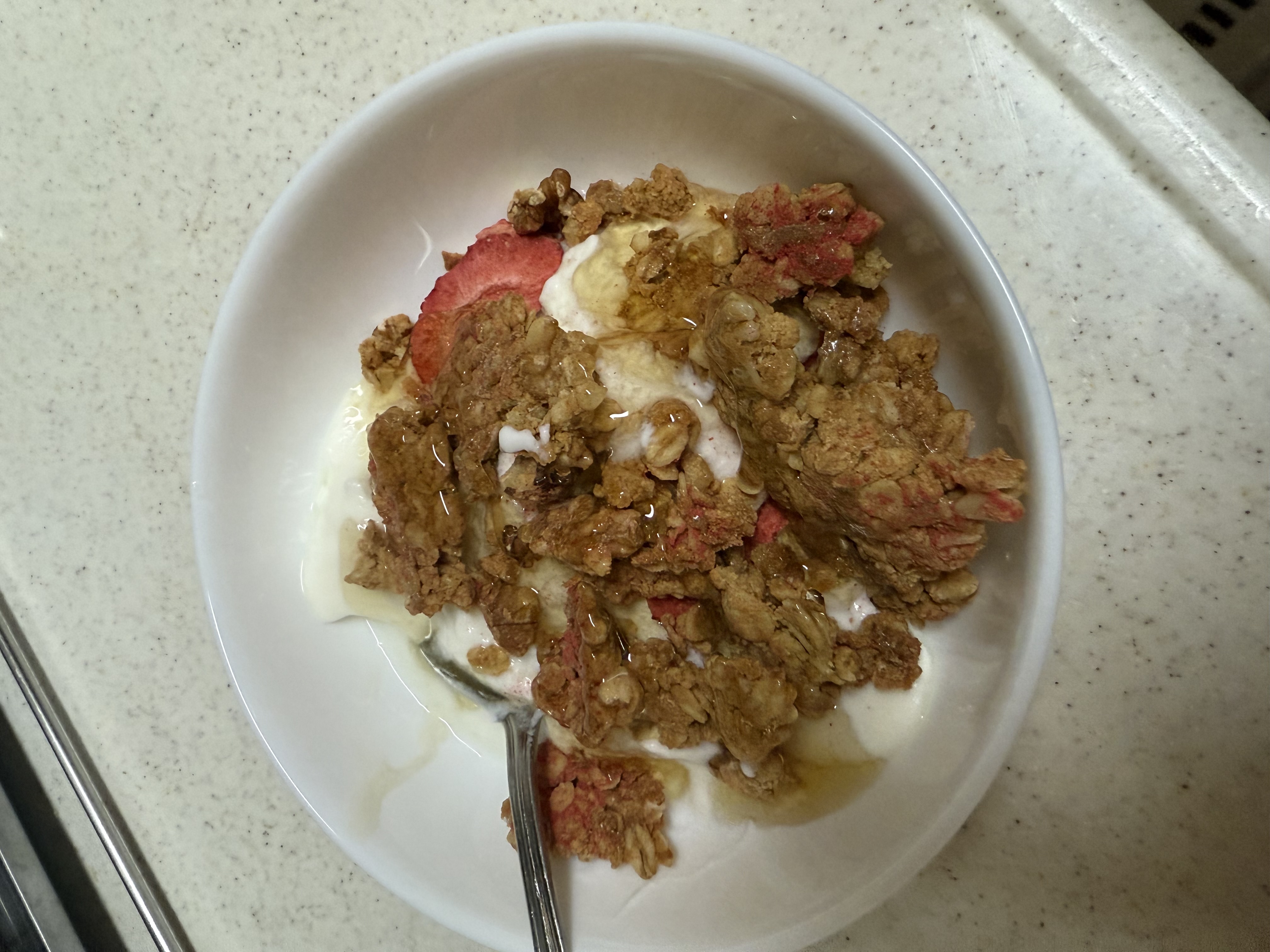 今回、「玄米胚芽グラノーラセット(いちごと発酵バター・薬膳)」を試食しました。まず、発酵バター味は、ひと口食べた瞬間にバターの芳醇な香りが広がり、コクのあるまろやかな甘みが感じられました。玄米胚芽の香ばしさとバターのリッチな風味が見事に調和しており、噛むほどに素材の旨みが引き立ちます。ミルクやヨーグルトとの相性も抜群で、朝食にもおやつにもぴったりでした。
