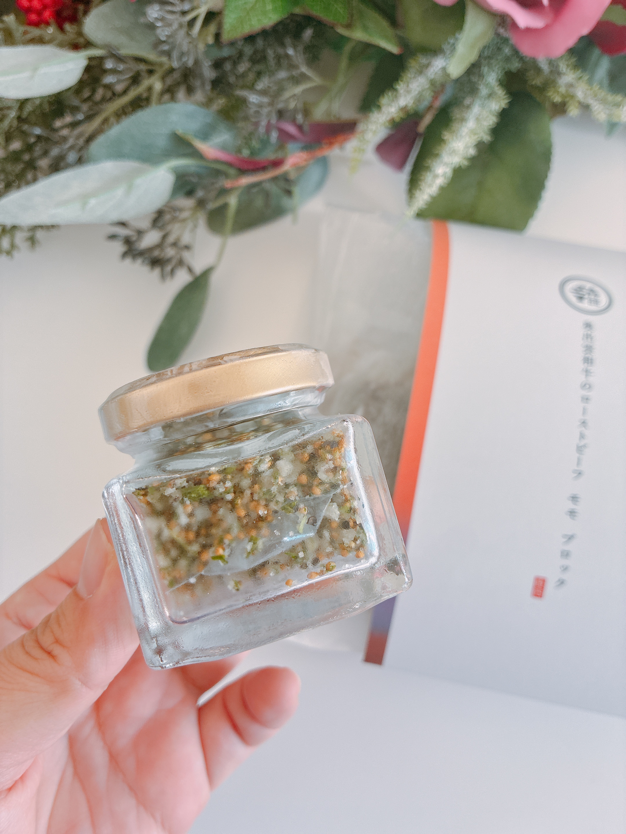 セットの八雲塩は、複数のハーブと上質な岩塩をミックスしているとのことで、香りもよく存在感のある塩で、ローストビーフの甘みや旨みを存分に引き出してくれます。