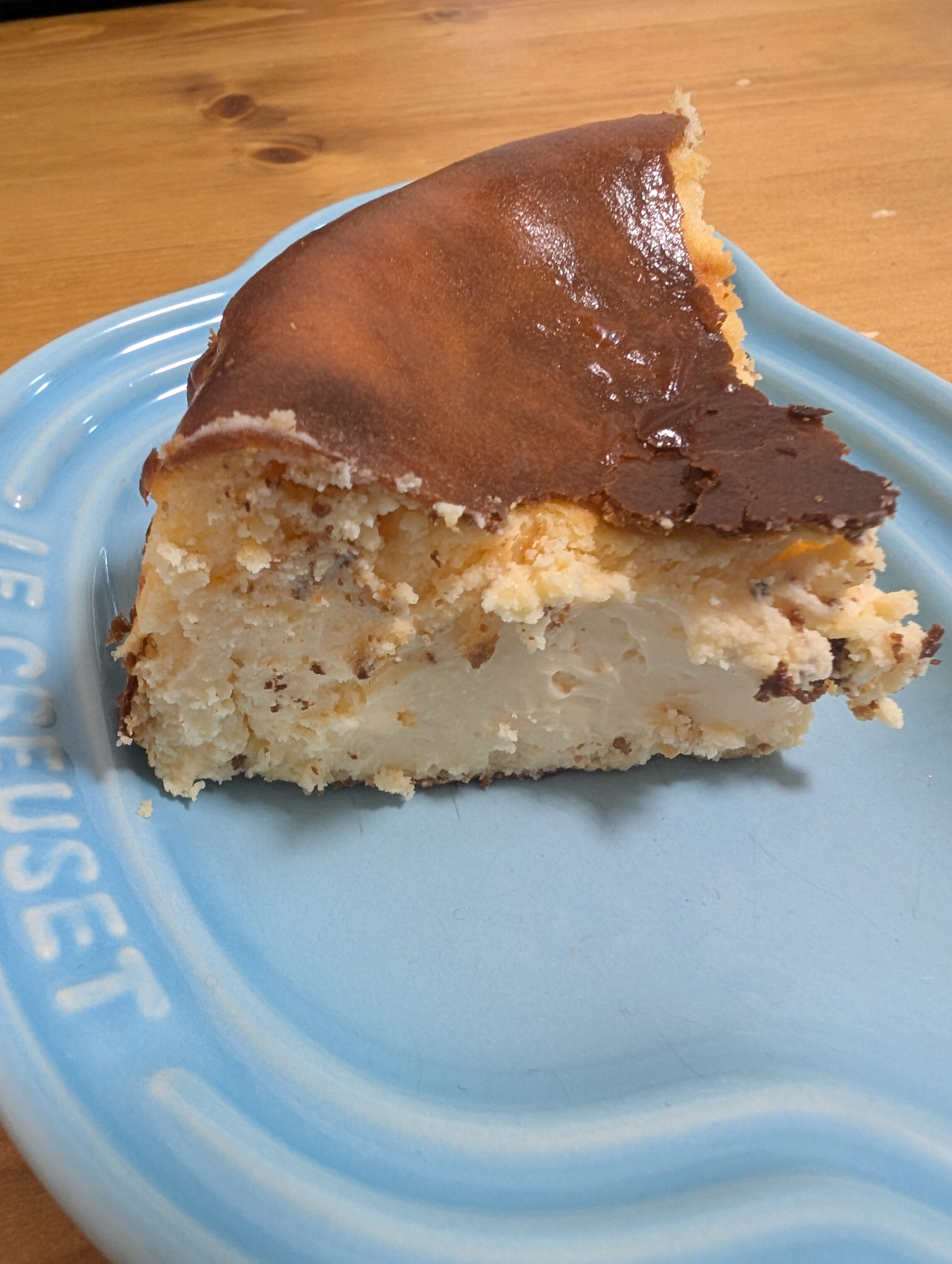子どもがいるので、まずは一緒におやつタイムにいただきました。切り分けると中はしっとりなめらかで、とろっとした質感が見るからに濃厚。ひと口食べてみると、外側のほろ苦く香ばしい部分と、中のクリーミーでコクのあるチーズのバランスが絶妙で、とても本格的な味わいに驚きました。
