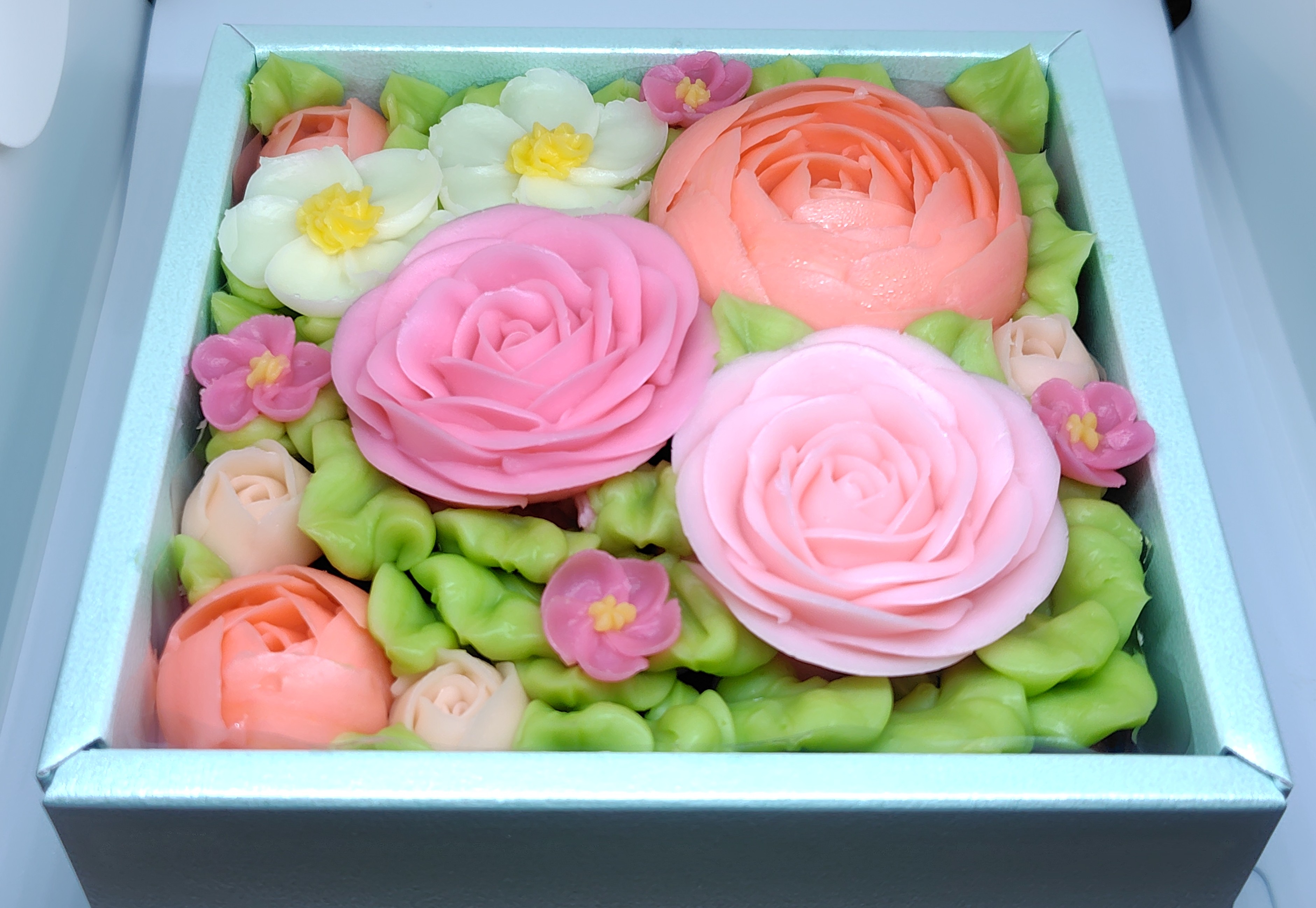 開けた瞬間、花のような笑顔咲く、食べられるお花のボックスフラワーケーキ。