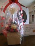 開くと、丁寧に運ばれて来たかわいいいちごのブーケでした。トップのハートのパイナップルが印象的でした。