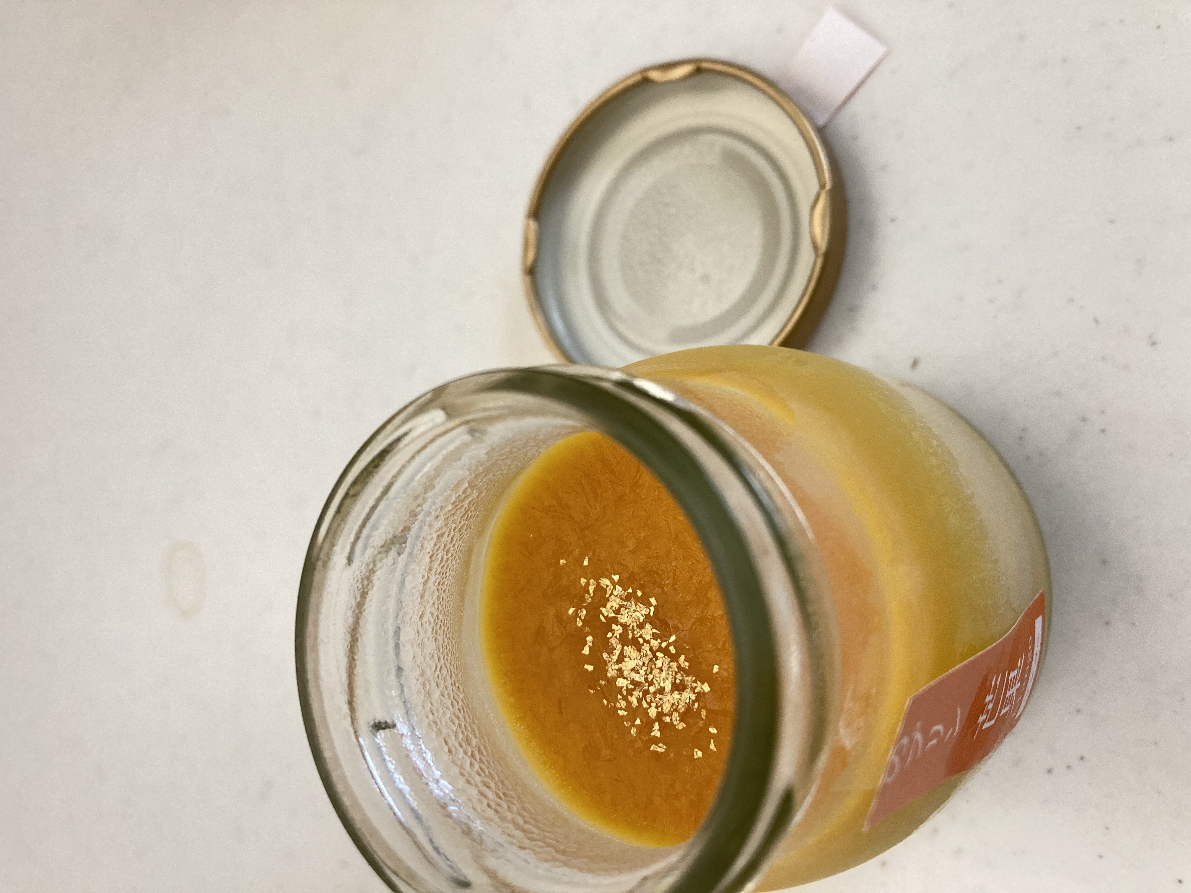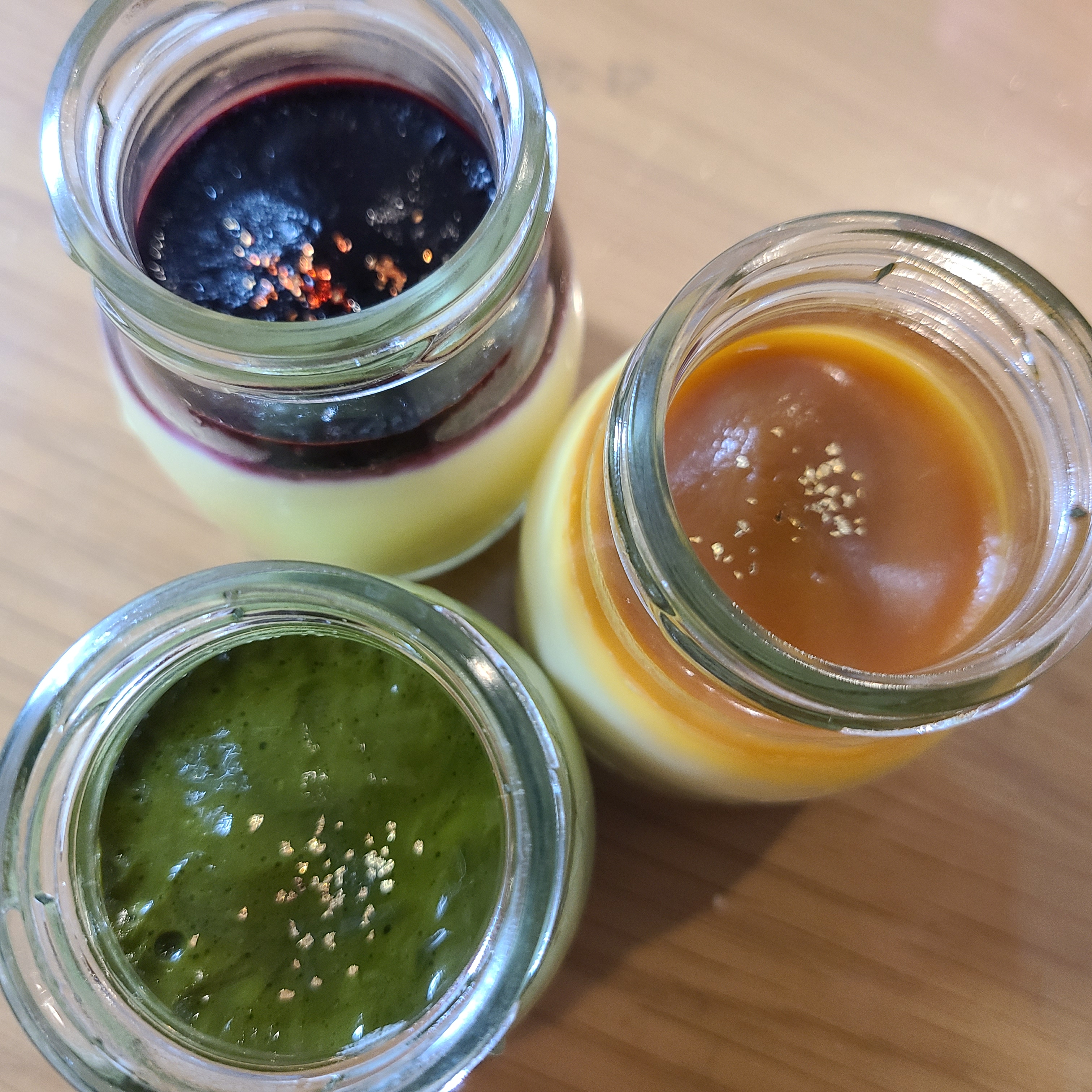 マンゴーは、フルーティーなゼリーで甘いプリンが南国気分にやや爽やかめに食べられます。その上ココナッツの香りと味わいがいい味を出してくれています。