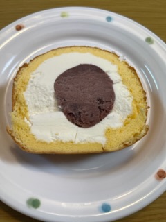 どっしりとした見た目の餡子とバタークリームは、最高コラボでした。ロールケーキの美味しい食べ方の説明書も同封されており、絵柄も文面もとてもわかりやすかったです。3パターンの食べ方の中で、おすすめレンジ500W10秒は、とろっとしたバターの塩味が、さらにきいて、あったかいあんことの相性が抜群でした。