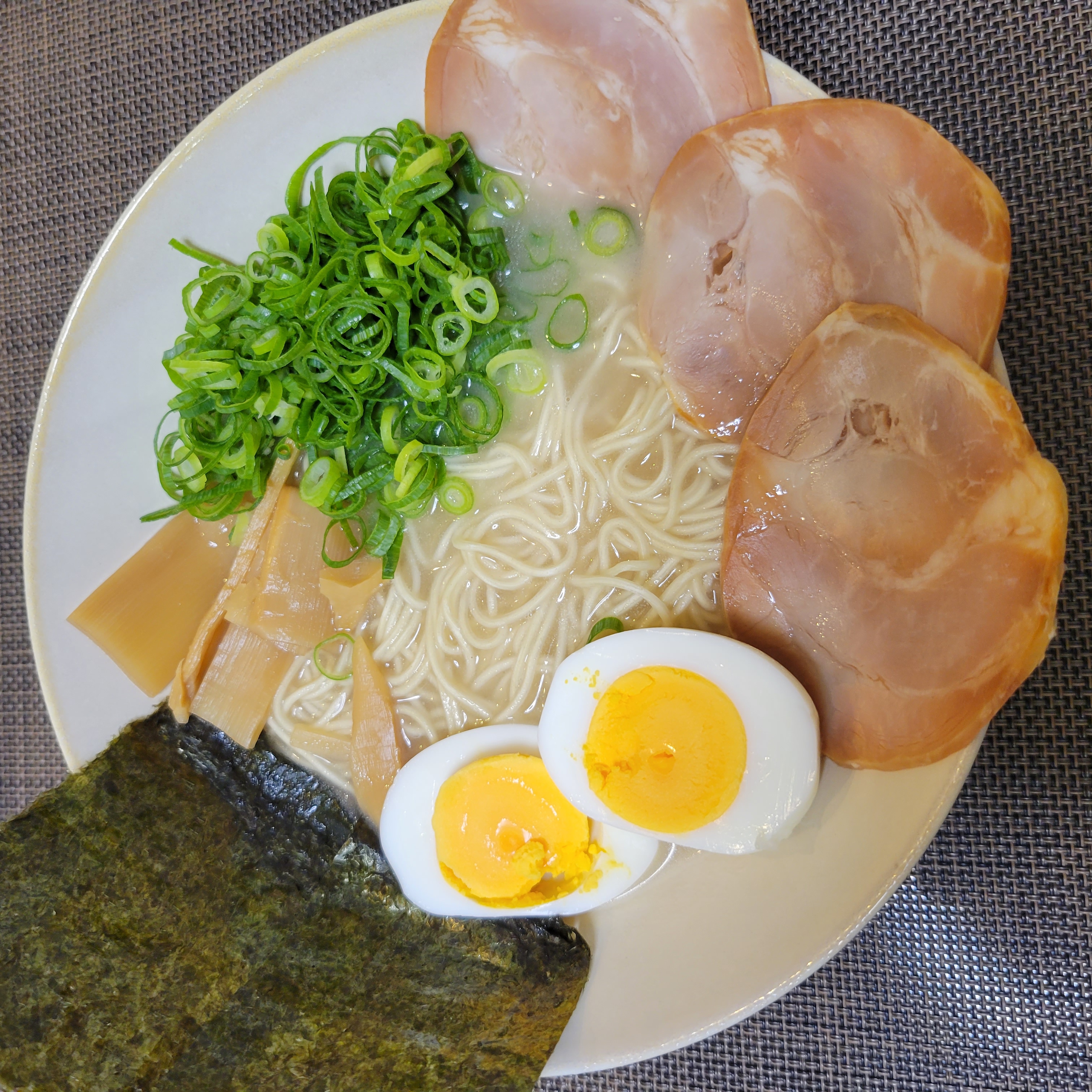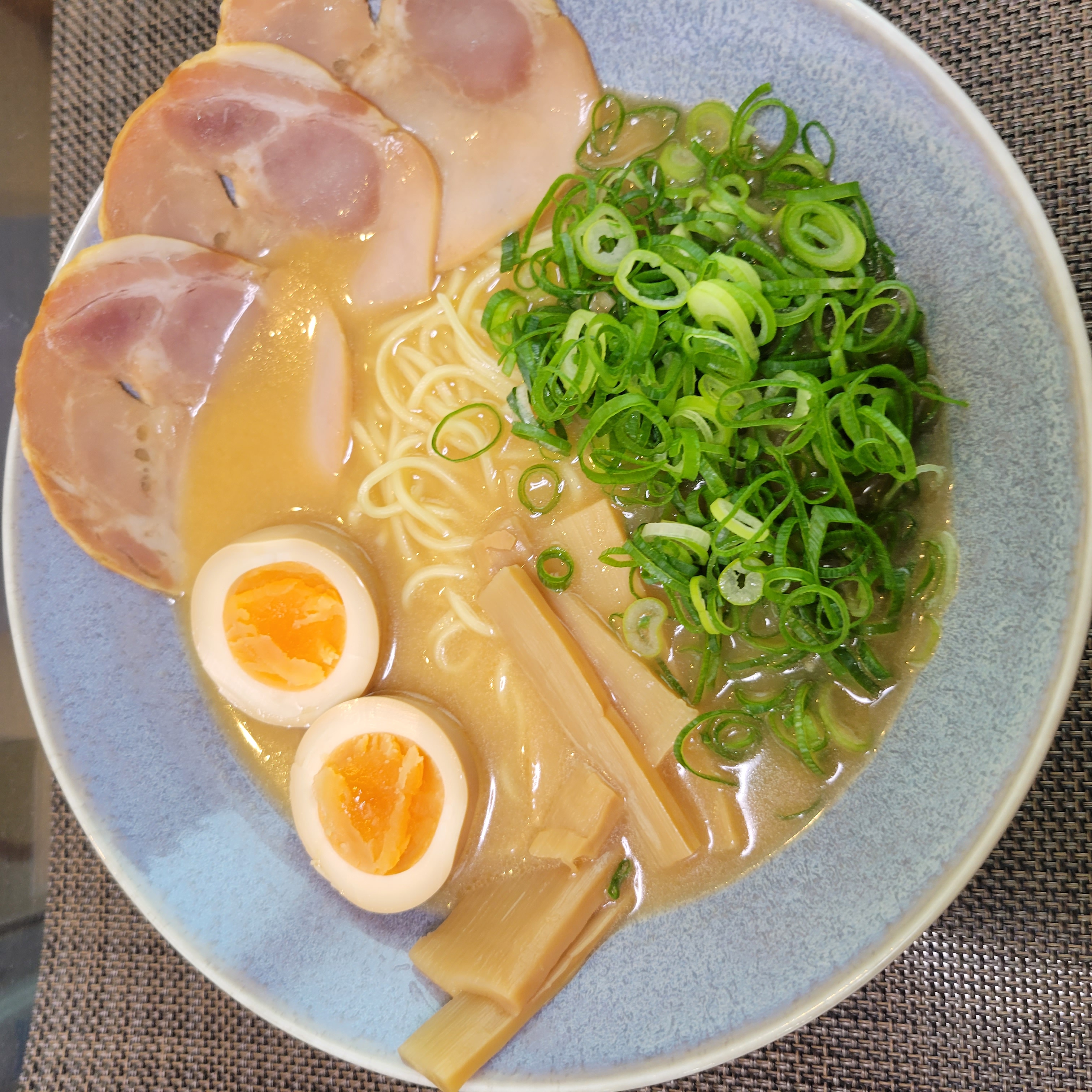 →細麺なので麺に絡みやすく、濃厚な豚骨スープですが、こってりしすぎず食べやすいのも良かったです。
