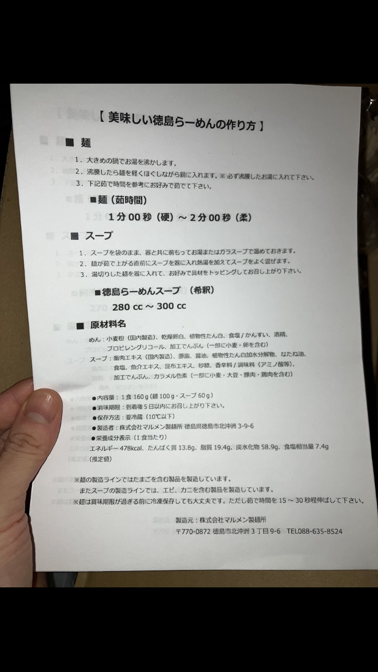 ・徳島らーめん(麺110g、スープ60g)