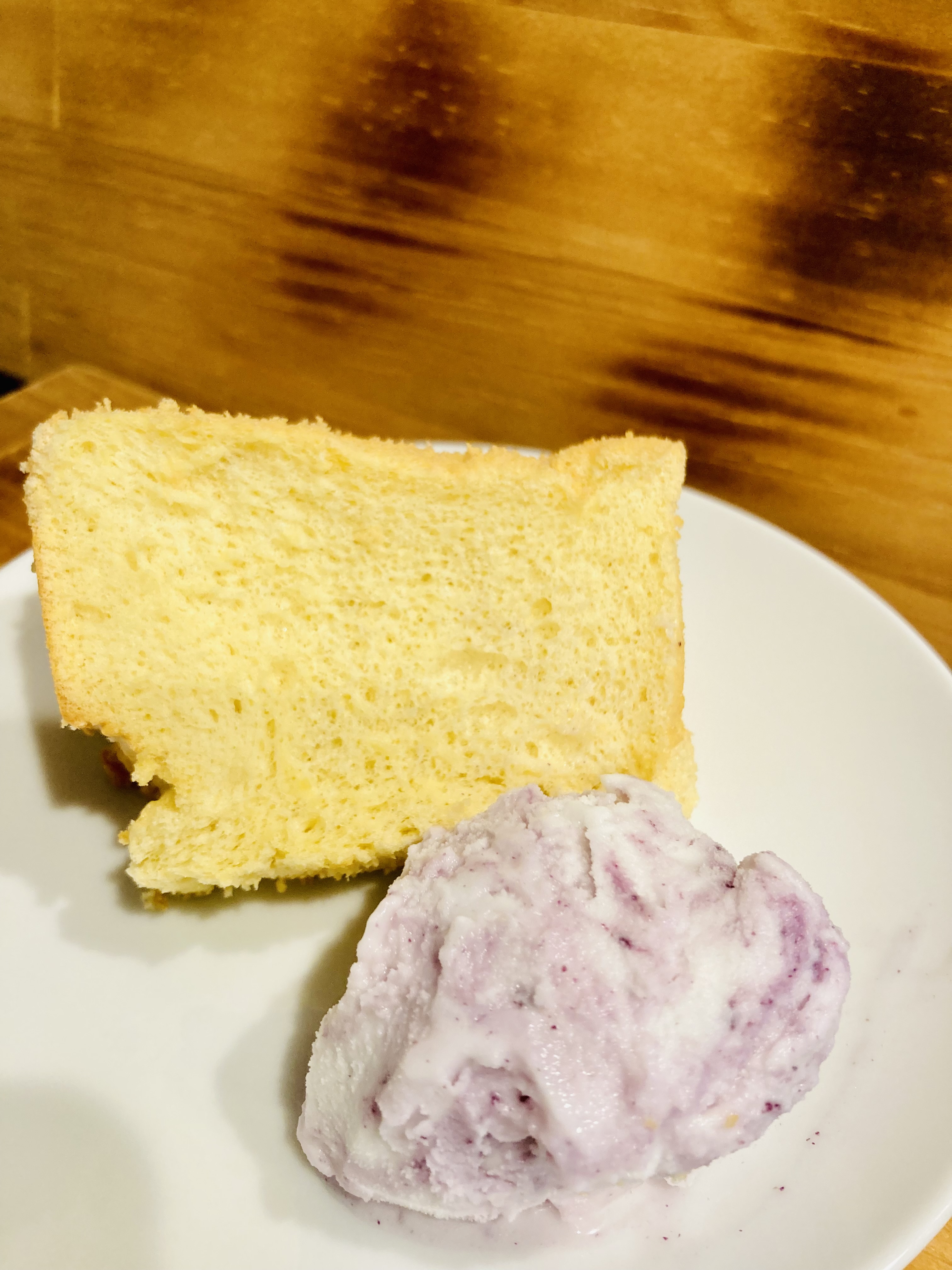 蓋を開けるとブルーベリーの紫色とヨーグルトアイスのマーブルが美しく、スプーンですくうと大粒のブルーベリーが贅沢に使われていることがわかります。フレッシュな大粒ブルーベリーの果汁感や自家製ヨーグルトのさっぱりとした味わいがマッチし、とても爽やかなアイスです。こってりとしたお料理を頂いた後のデザートに一番よく合うフレーバーです。