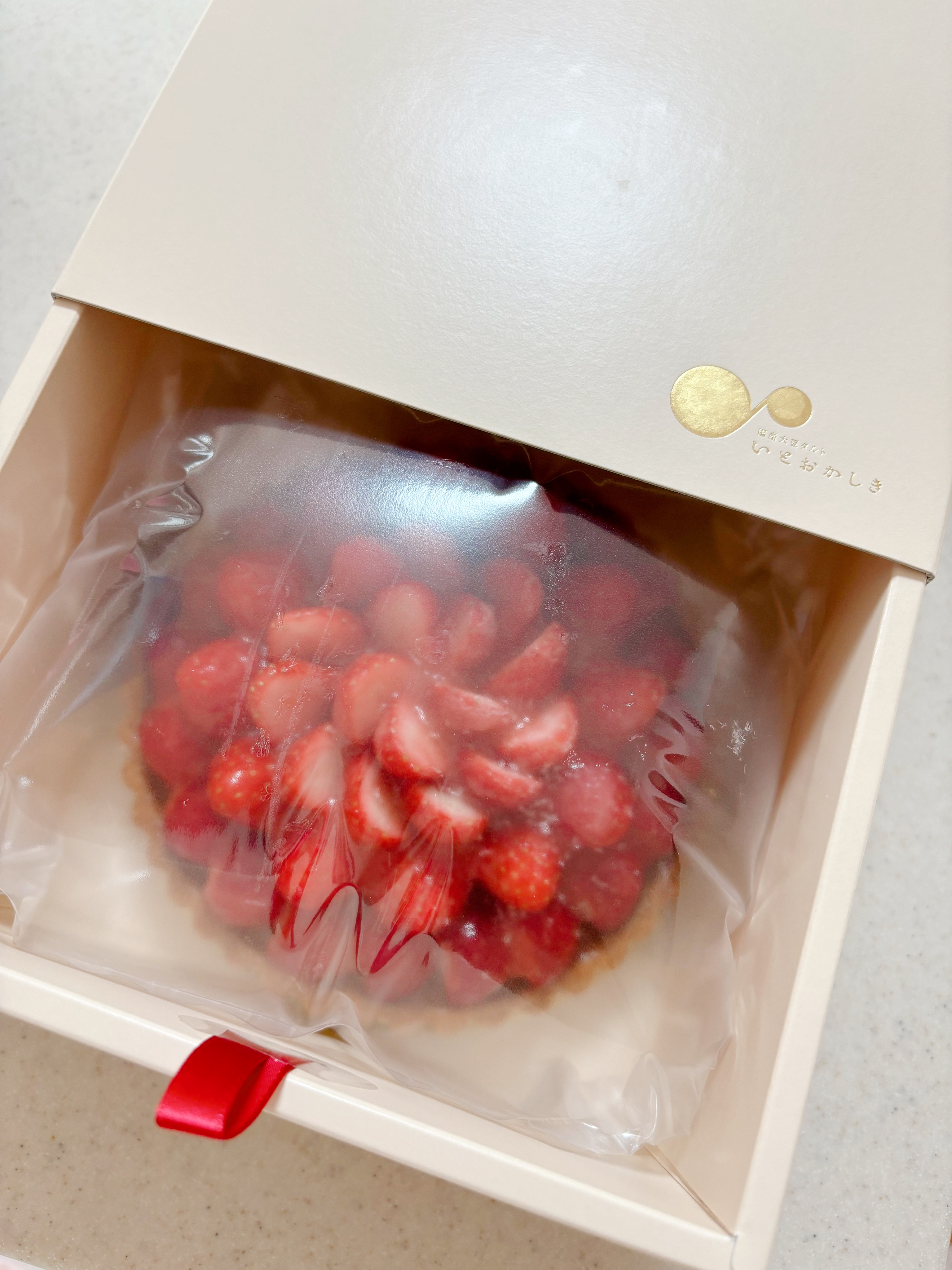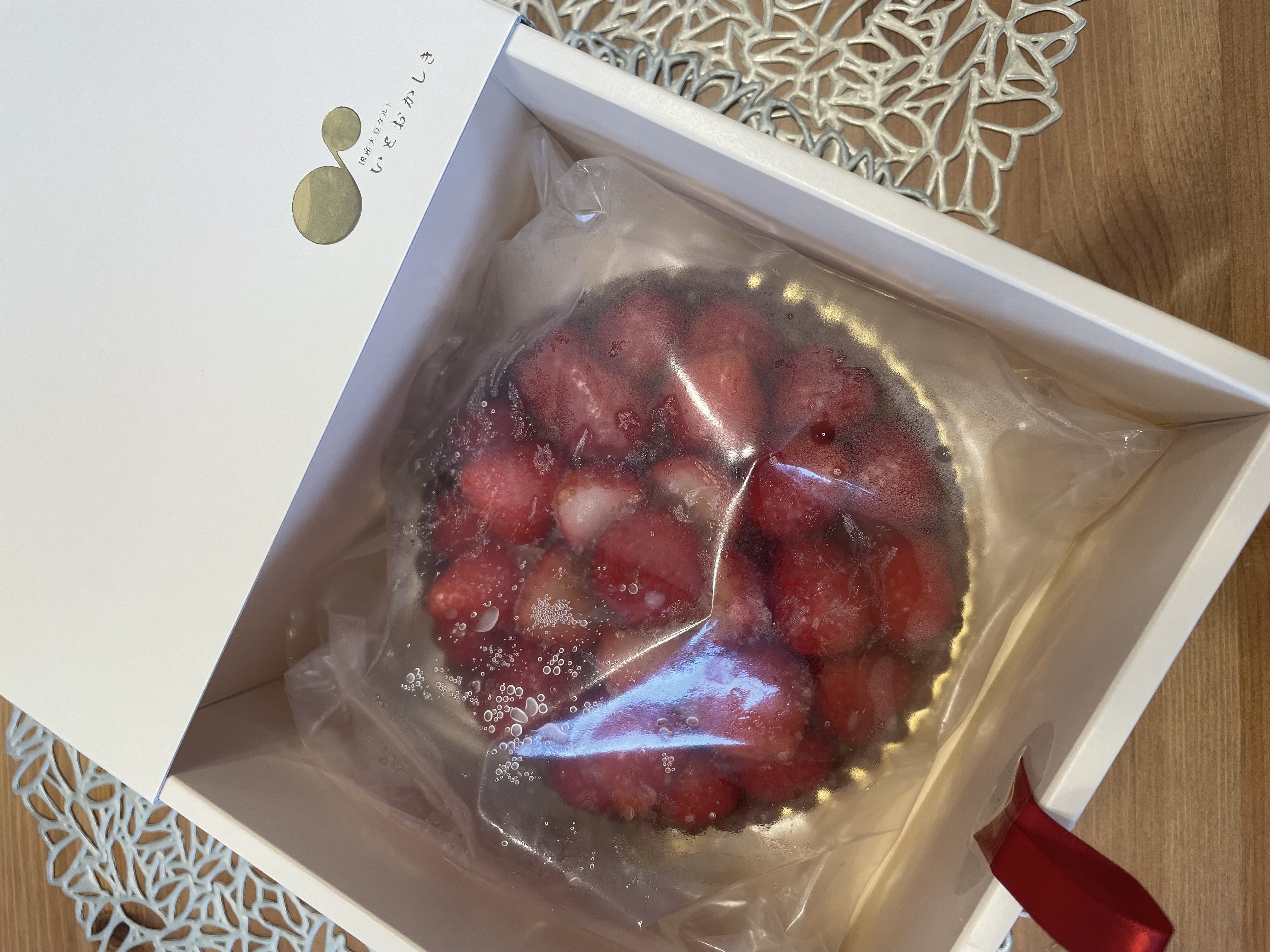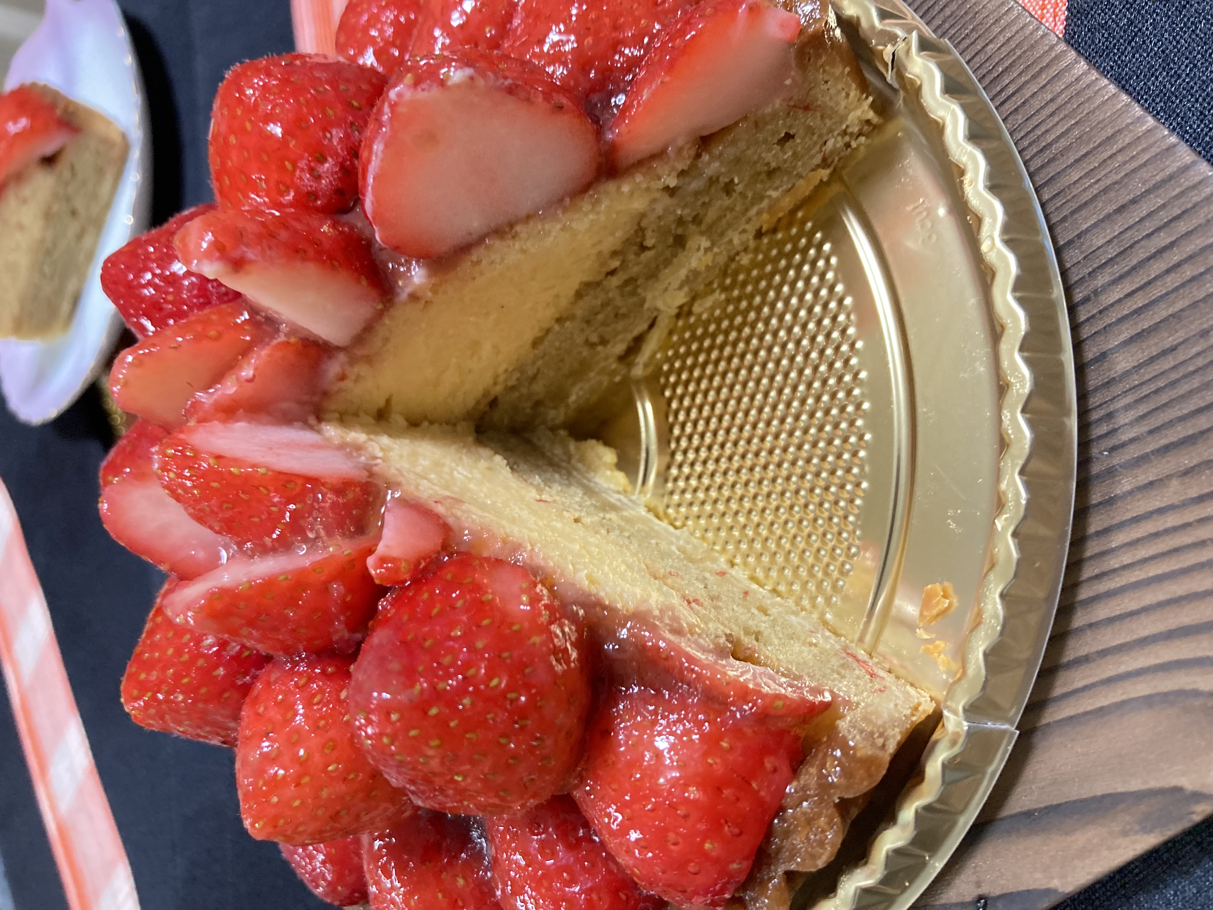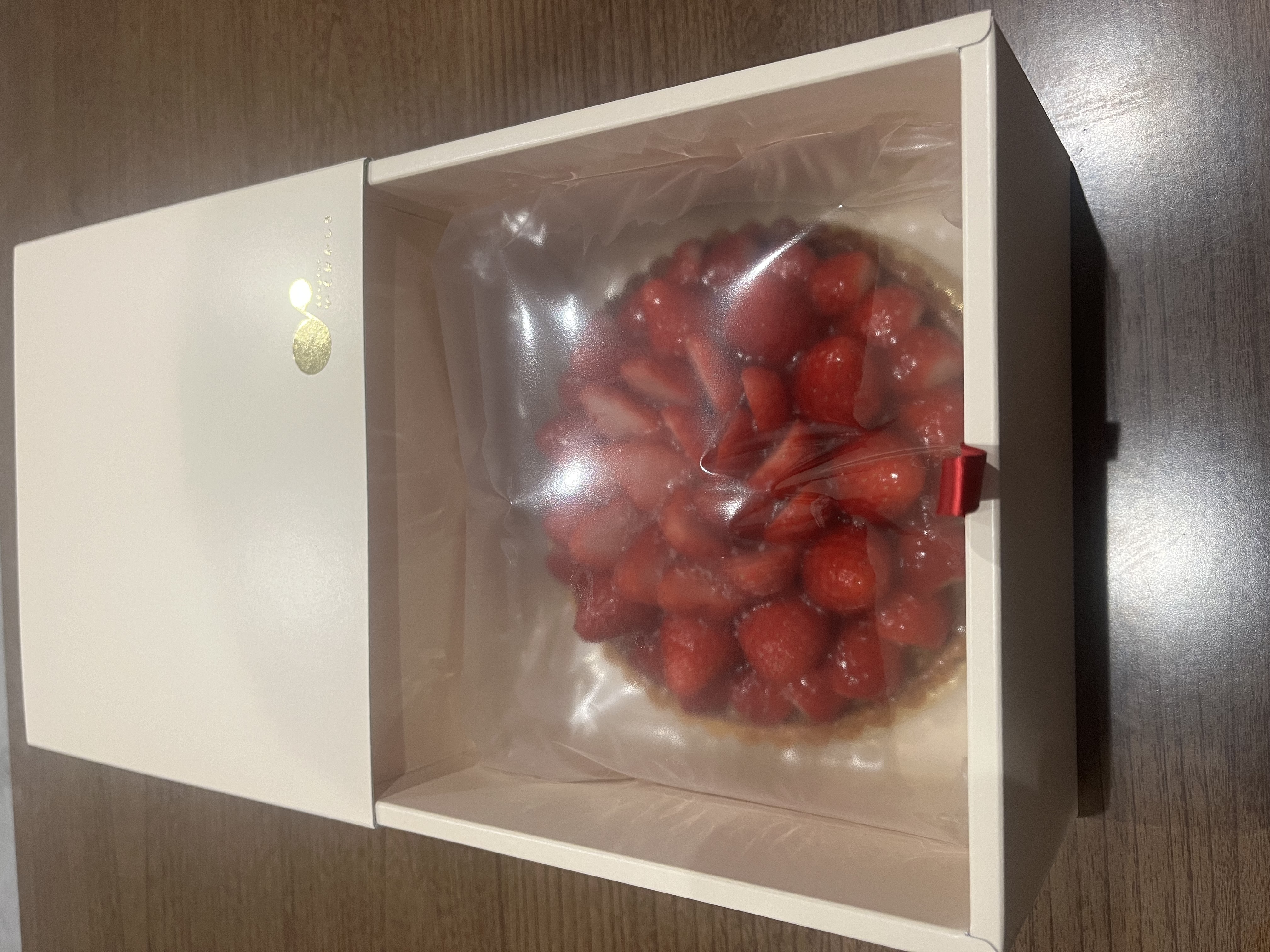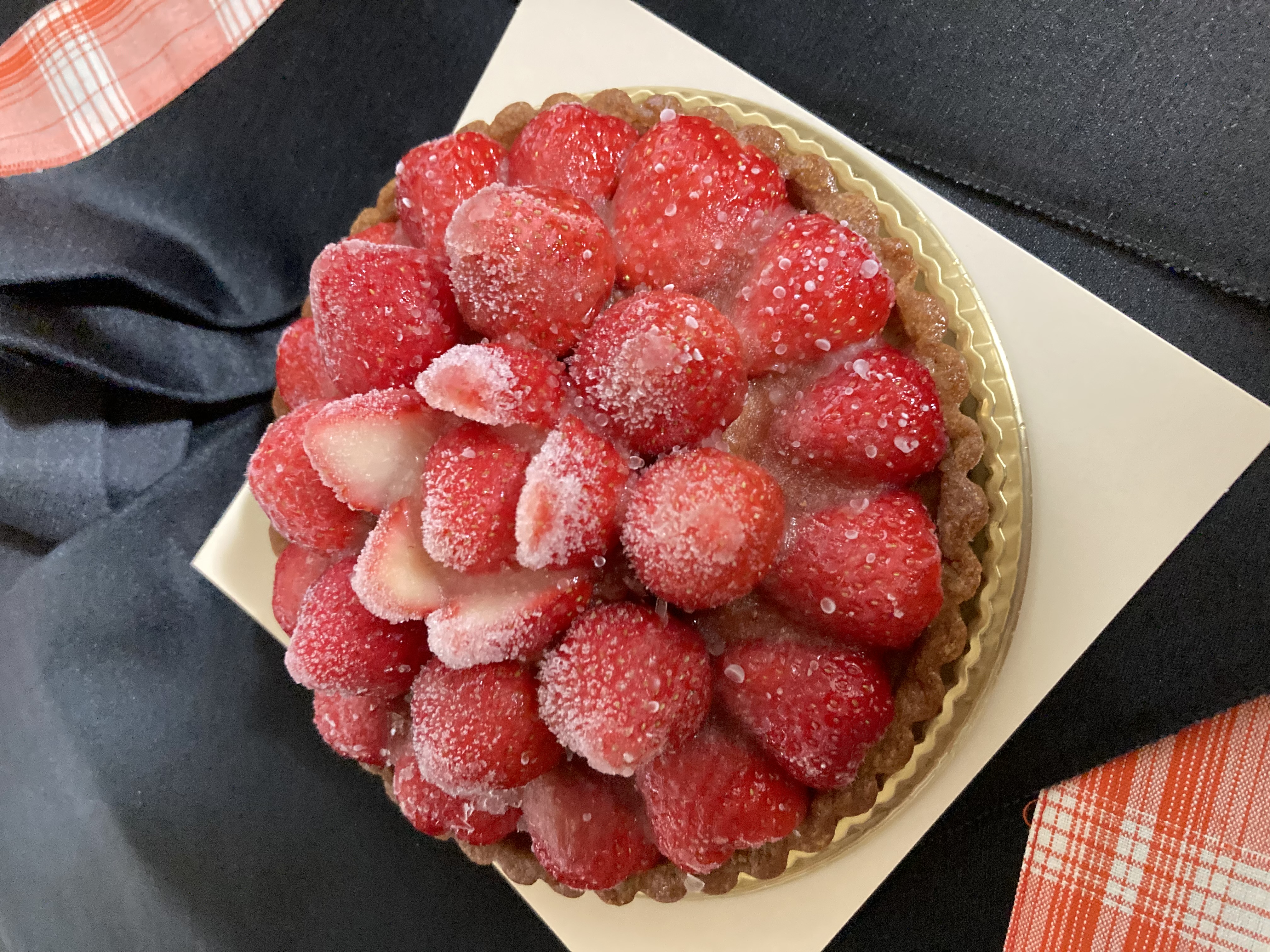到着時より、鮮やかで苺たっぷりでつやつやのタルト。