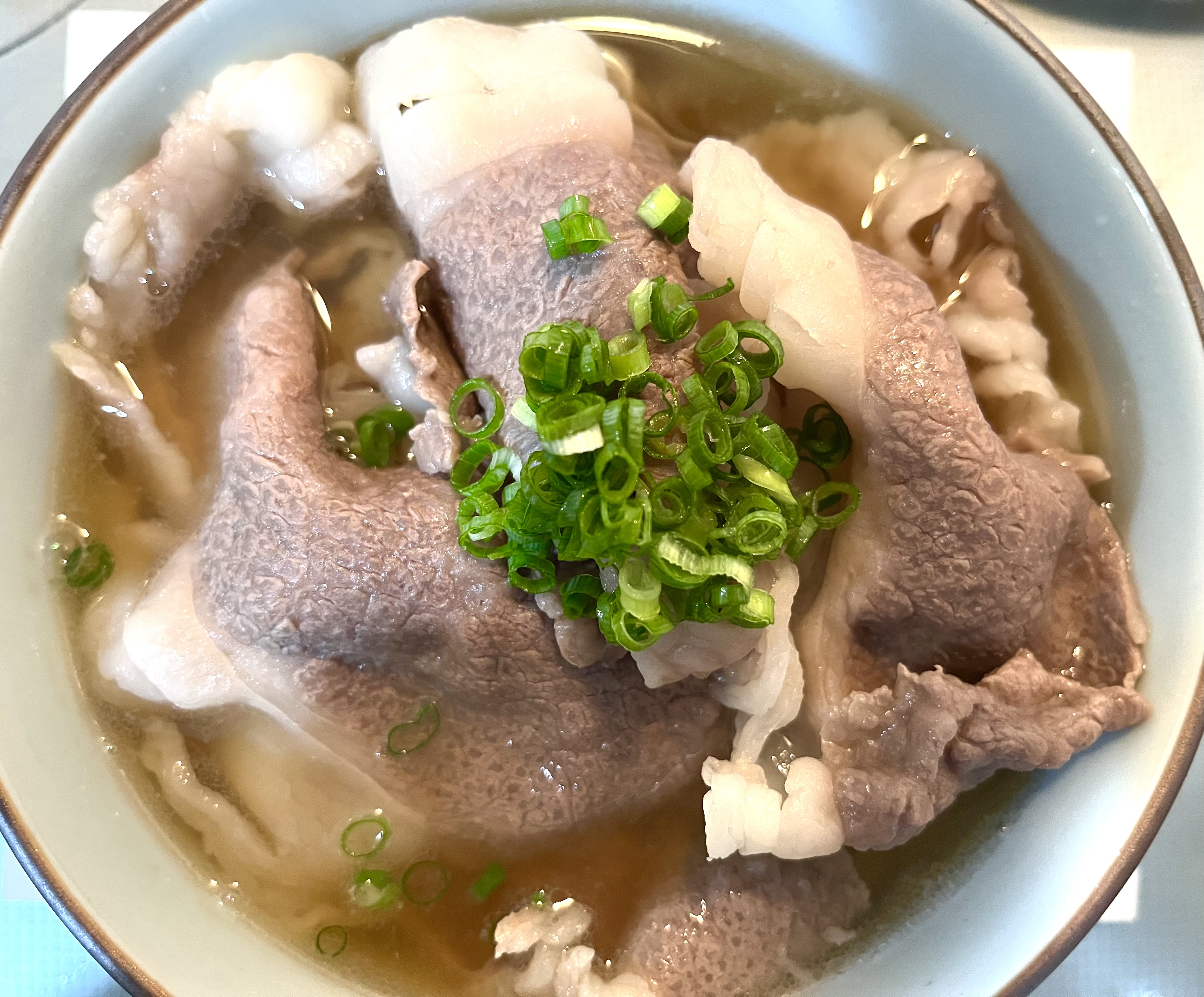 お出汁は、瀬戸内のいりこなどこだわりの素材で作られた化学調味料不使用の専用だしとのこと。専用たれと混ざって、少し甘めなところがお肉と最高に合います!!