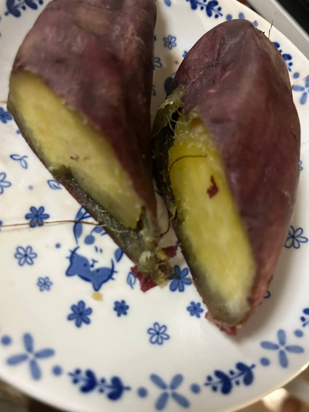 その後、3分ほどレンチンすると、ほかほかの焼き芋に。薄皮なので食べやすく、甘さもちょうど良く、手軽に準備できるので朝ごはんに食べたいと思います!