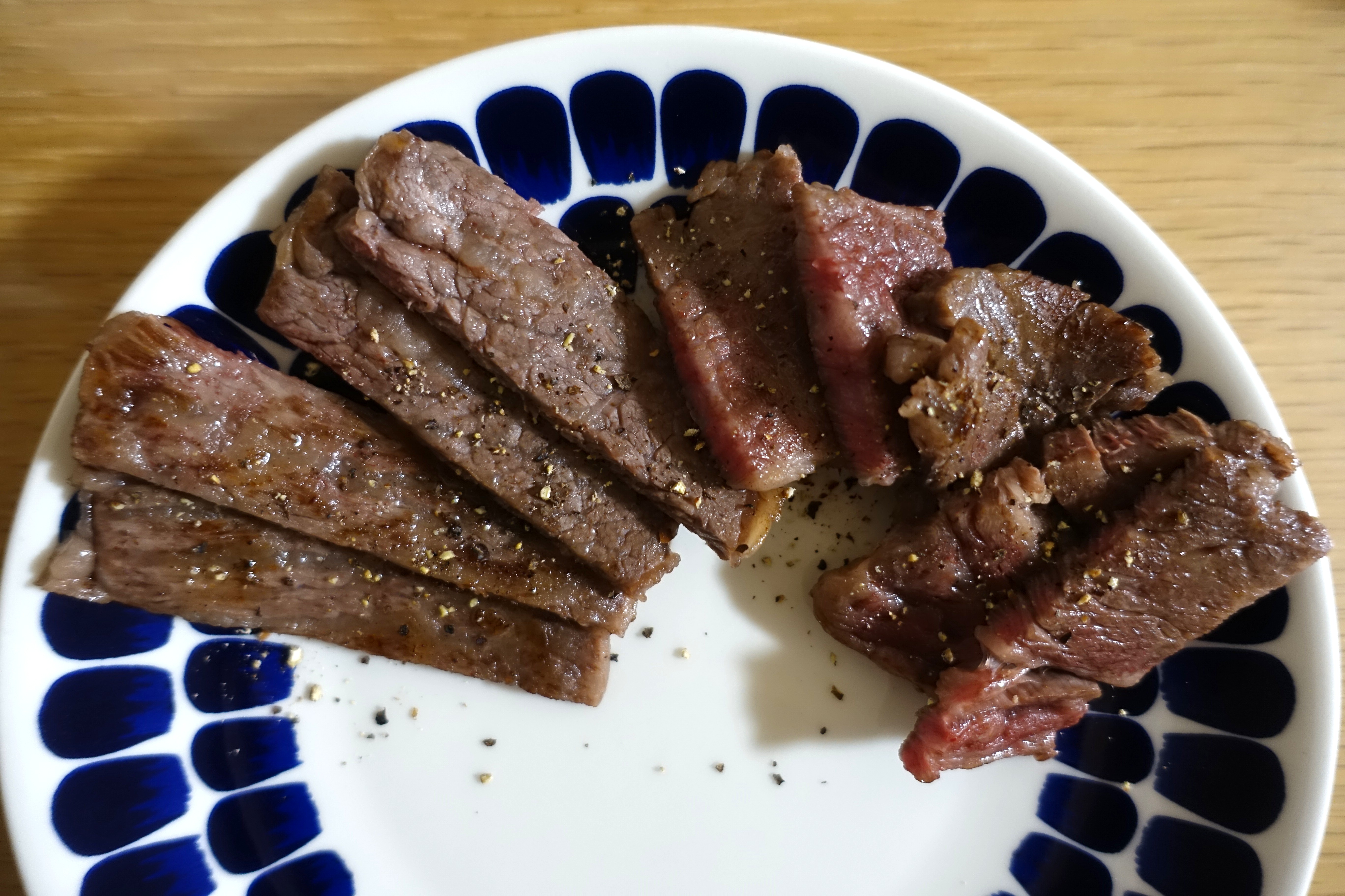 今回はまず、見た目の良いお肉を選んでステーキにしていただきました。シンプルに焼くだけで、お肉の良い香りが広がり、食卓が一気に特別感のある雰囲気に。味付けはポン酢、わさび醤油、にんにくチップ、大根おろしなどいろいろ試してみました。夫はさっぱりと食べられるポン酢が一番気に入ったようで、脂の旨味と酸味のバランスが良いと喜んでいました。私はわさび醤油がお気に入りで、お肉本来の甘みやコクをしっかり感じられる点がとても良かったです。にんにくチップでパンチを加えたり、大根おろしでさっぱりさせたりと、同じお肉でも味の変化を楽しめるのも魅力でした。