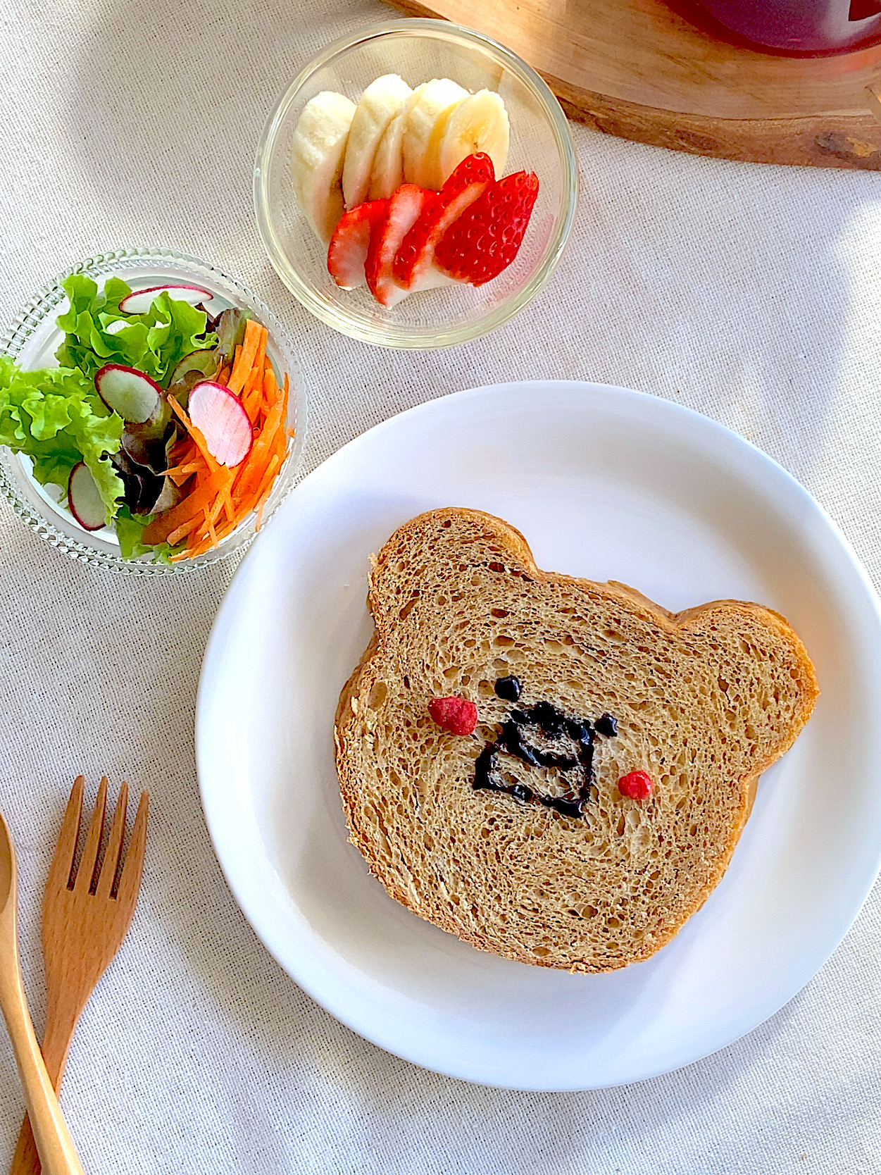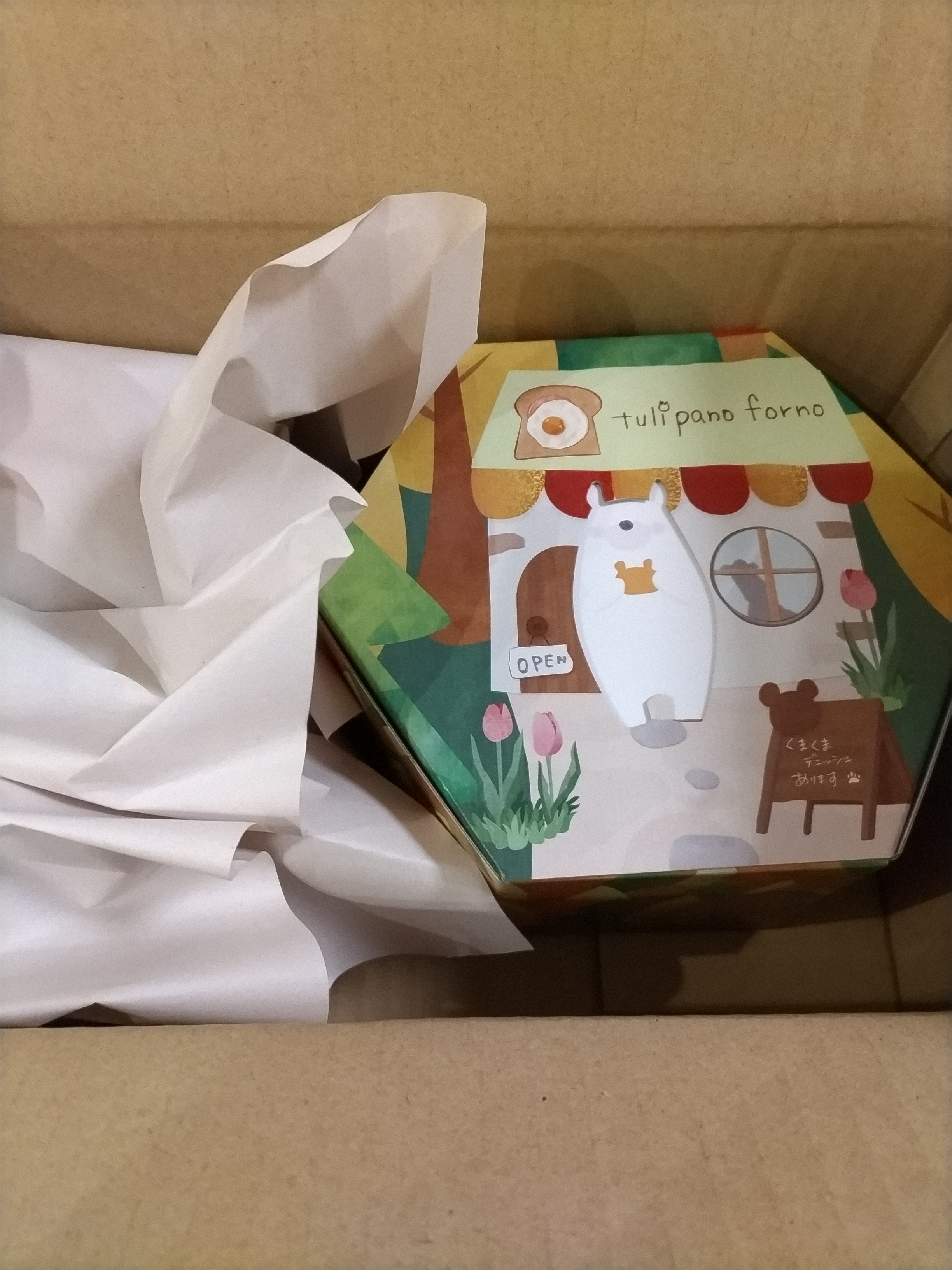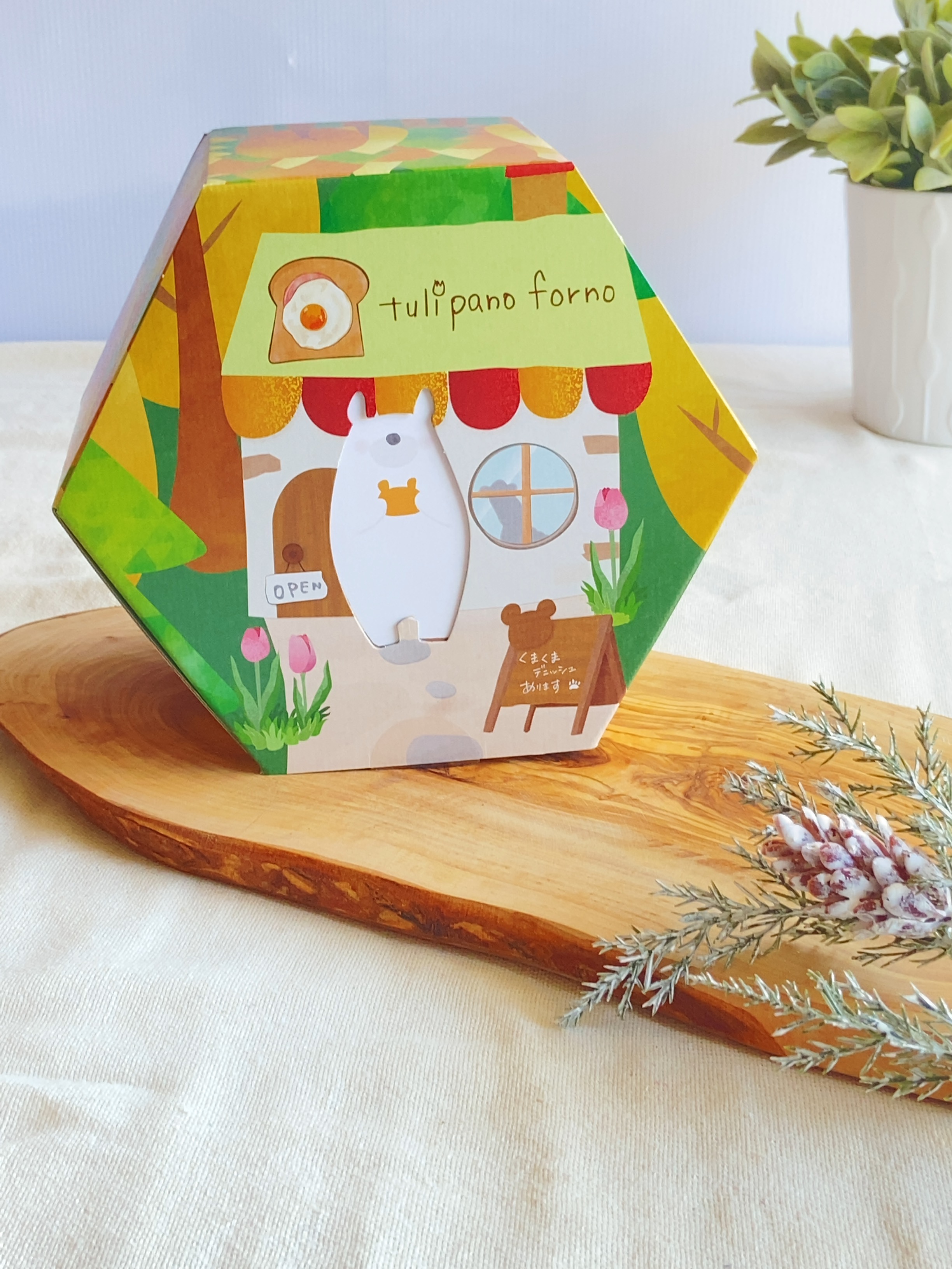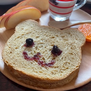 そしてパン!くまさんの形が可愛い〜!!ちびっこがいるおうち、女性への贈り物にはぴったりかと思います。中にはくまくまデニッシュの説明が物語のように書いてある紙が入っています。私は朝ごはんで食べました。起きるのがもぉ楽しみ!我が家のアラジンオーブントースターで280度で3分焼きました。うん!メイプルのいいにおい!!ほんのり甘くてさくっと美味しい!!優しい甘さ〜。紅茶に合いますよ。これは頑張ってる自分へのご褒美にもぴったりかも。甘い味のパンは元気がでます!4枚切りにしました。結構食べ応えがありましたよ!