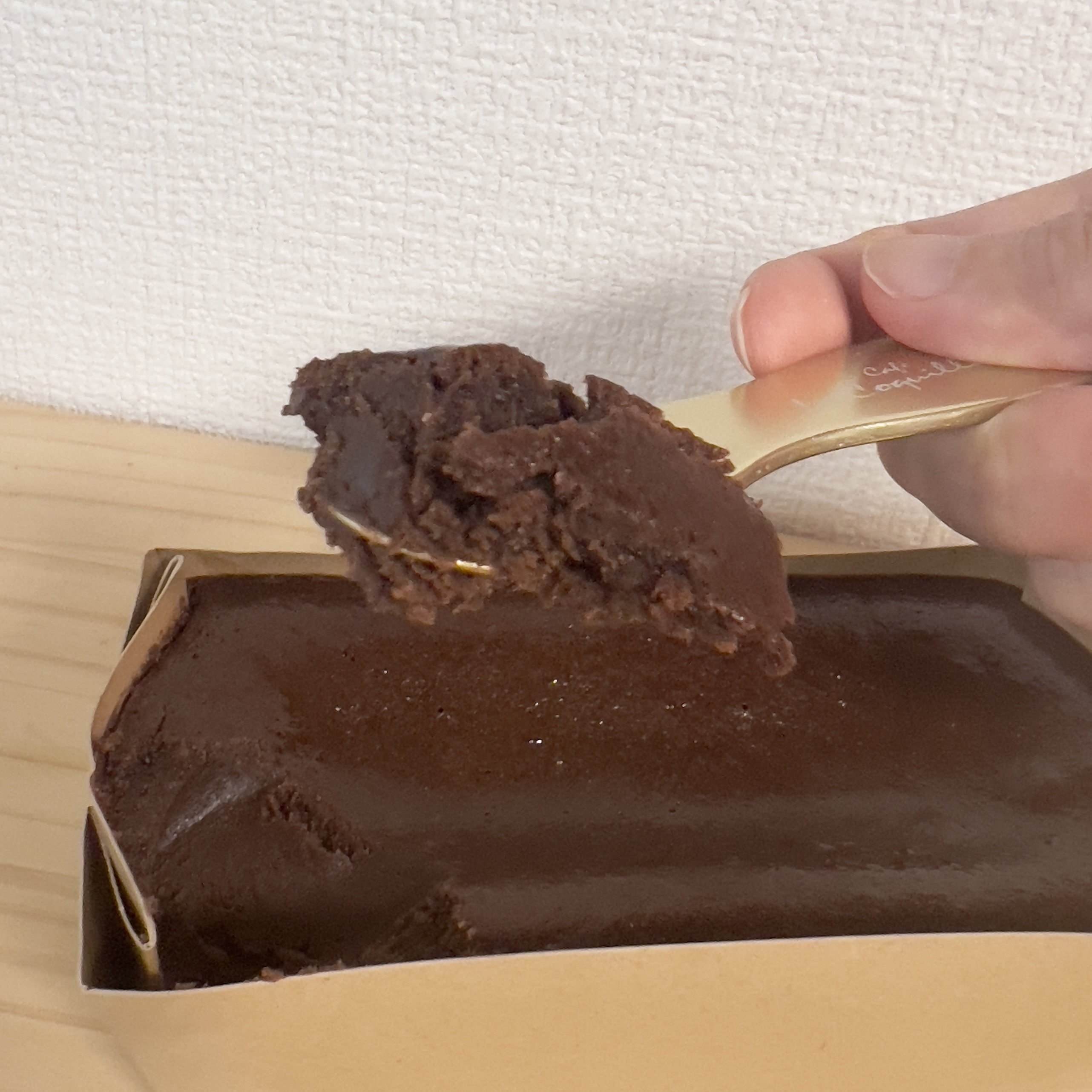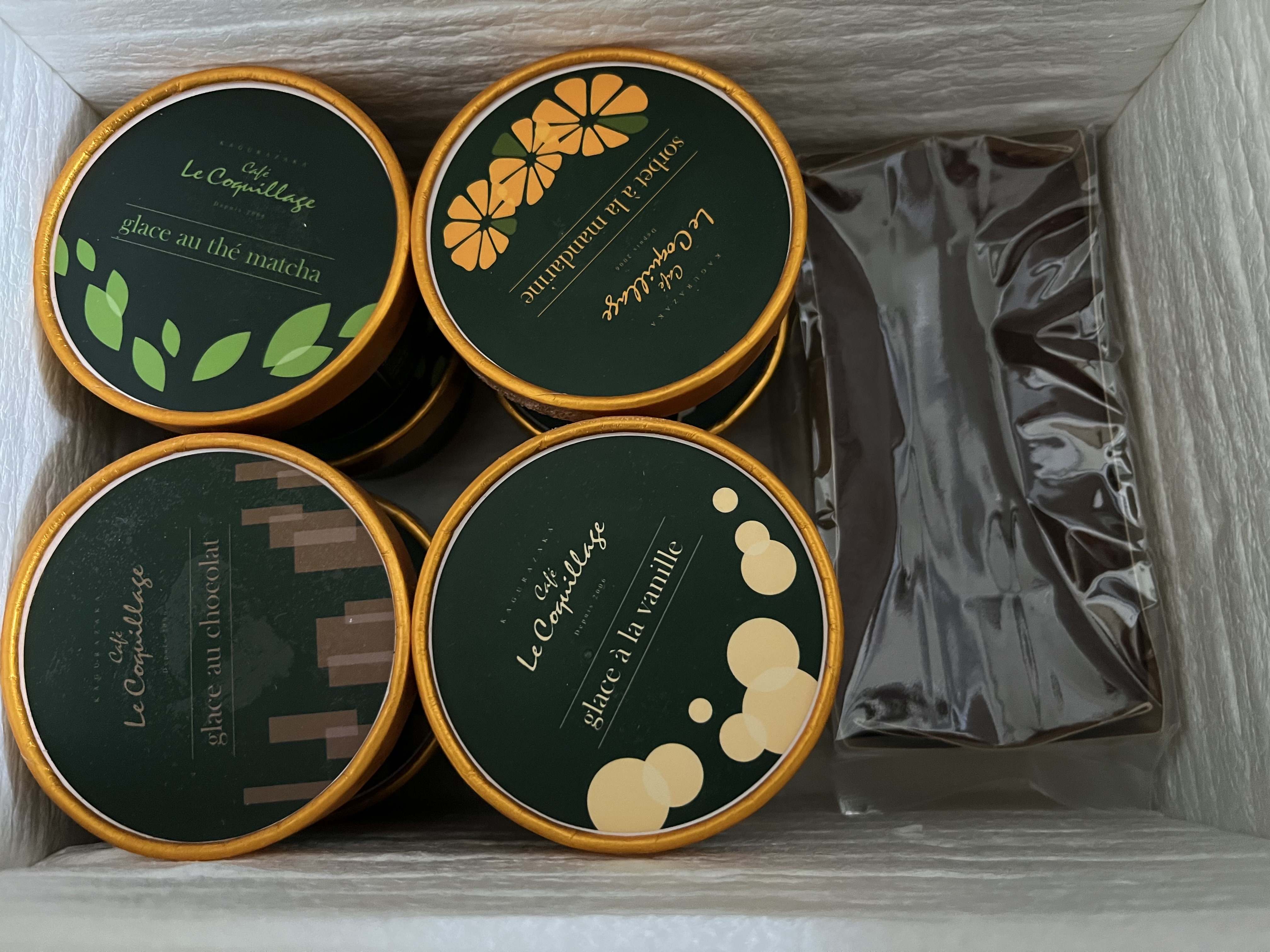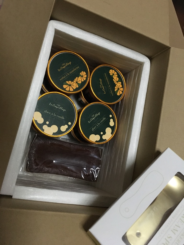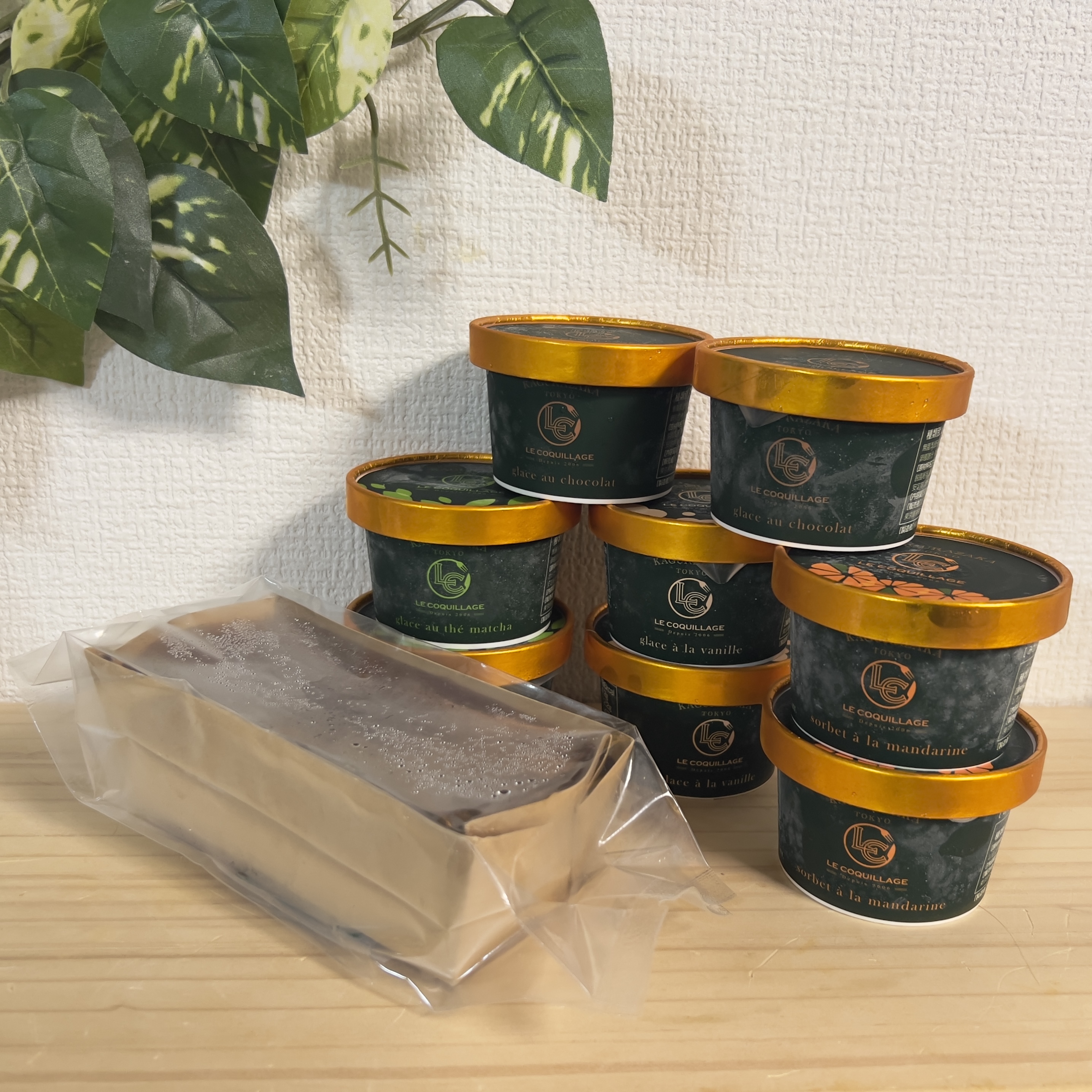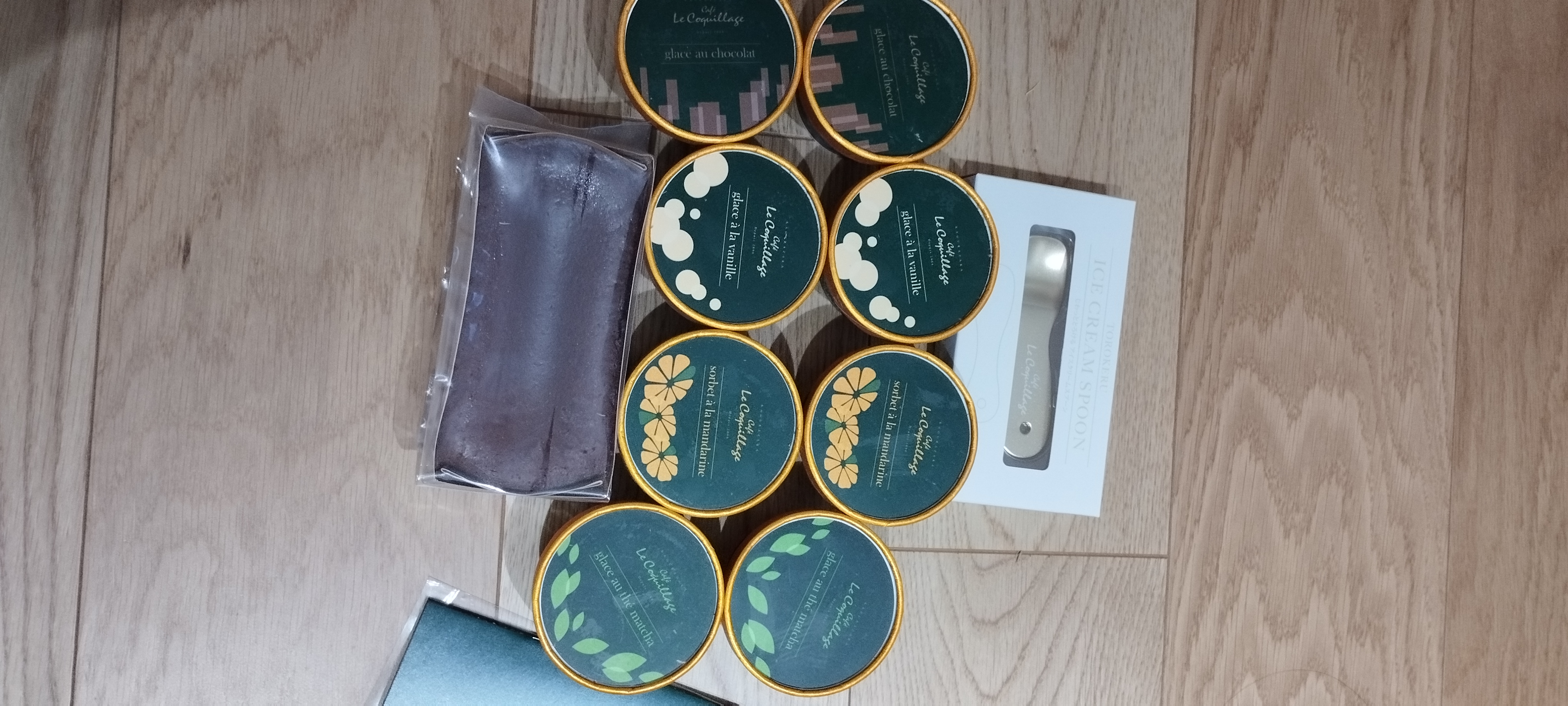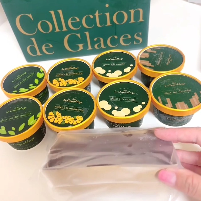 ■バニラアイスクリーム(glace à la vanille) バニラビーンズが贅沢に使用されており、4種類の中で一番「おっ」と驚いた1品。 シンプルな材料ながら、いつも食べてるバニラアイスとは一味ちがうコクがあり何が違うのか?と思って調べたら、フランス産カソナードというコクのあるブラウンシュガーを使用しているそうです。これだけでもこのセットのお取り寄せをする価値があるなぁと思えるほど、みんなにたべてほしいおいしさ。 単品でも大満足ですが、個人的には4種類の中で一番抹茶テリーヌと相性がいいように感じました。