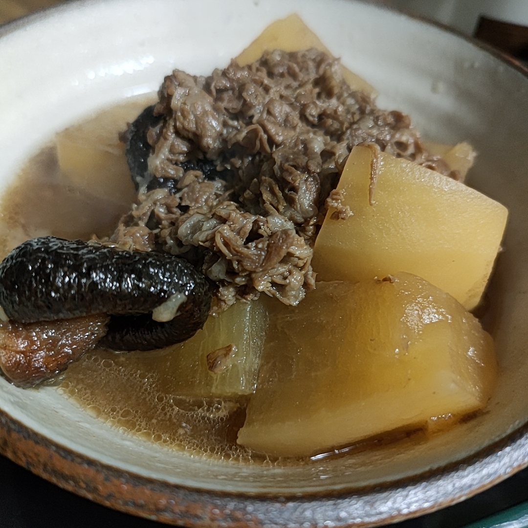 肉豆腐は灰汁や表面に浮いた脂を丁寧に取り除いた澄んだスープですが、あまり調味料を使用していないのにめちゃくちゃ美味しいスープになりました。