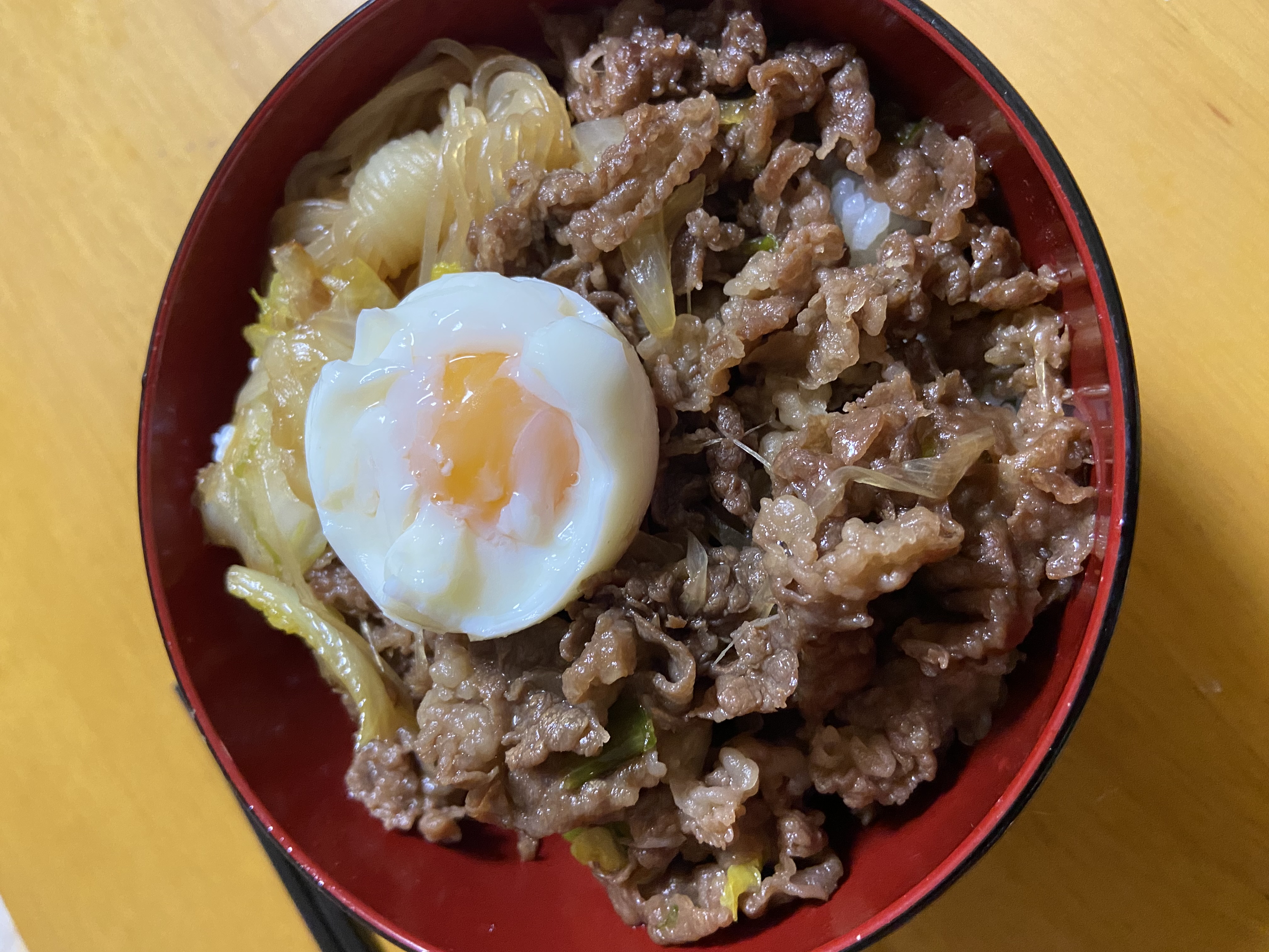 牛丼はおススメのレシピに乗っていた「牛すき丼」の作り方を参考に、お肉の量はふんだんに使用しました。