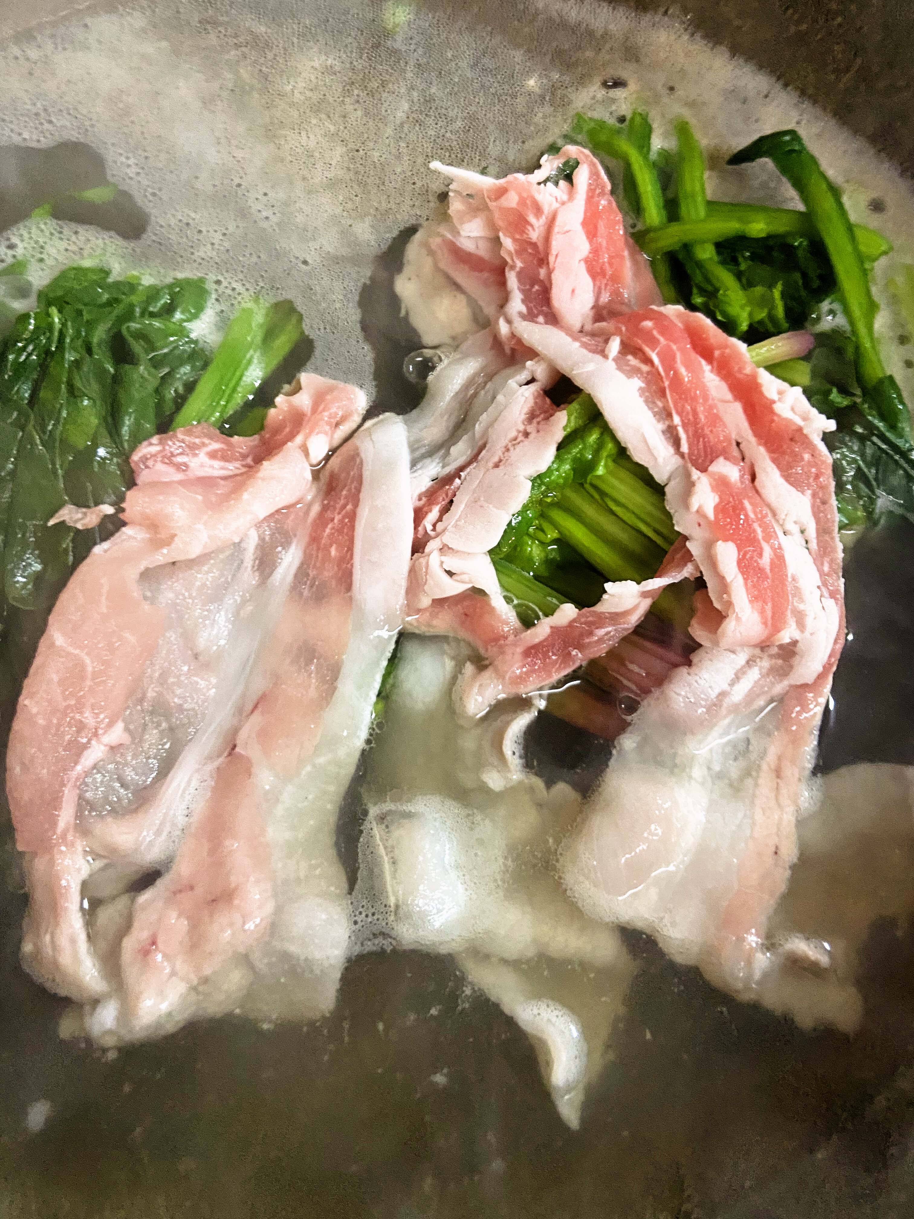 バラ肉・・・・・確かに見た目には、しっかりと脂身を感じられましたが、出汁にくぐらせ食べてみると、その脂身は甘さに変わり甘味のある美味しい脂身で、全然クセがなく、いくらでも食べれて胸やけはしないという感じのお肉でした。