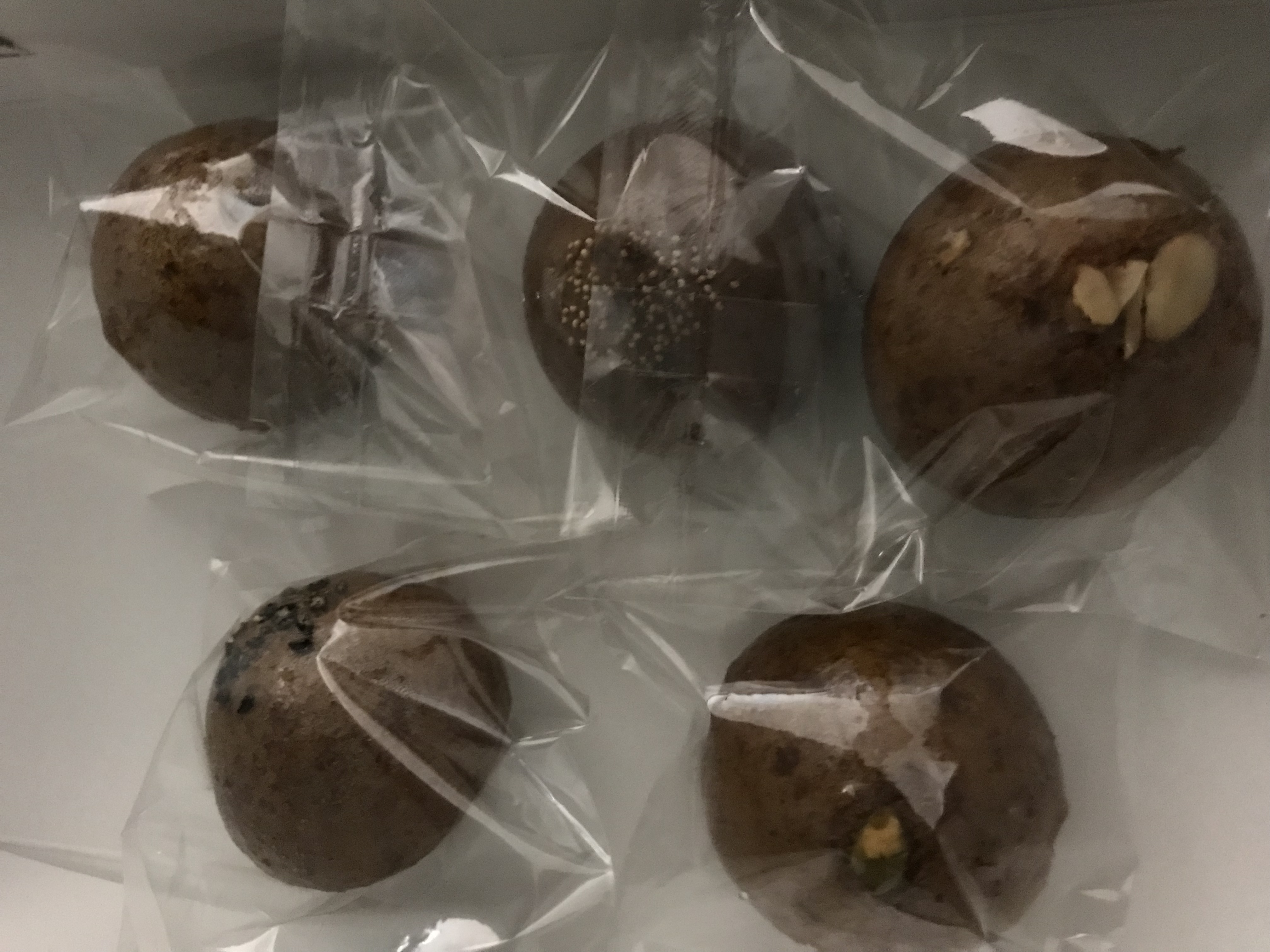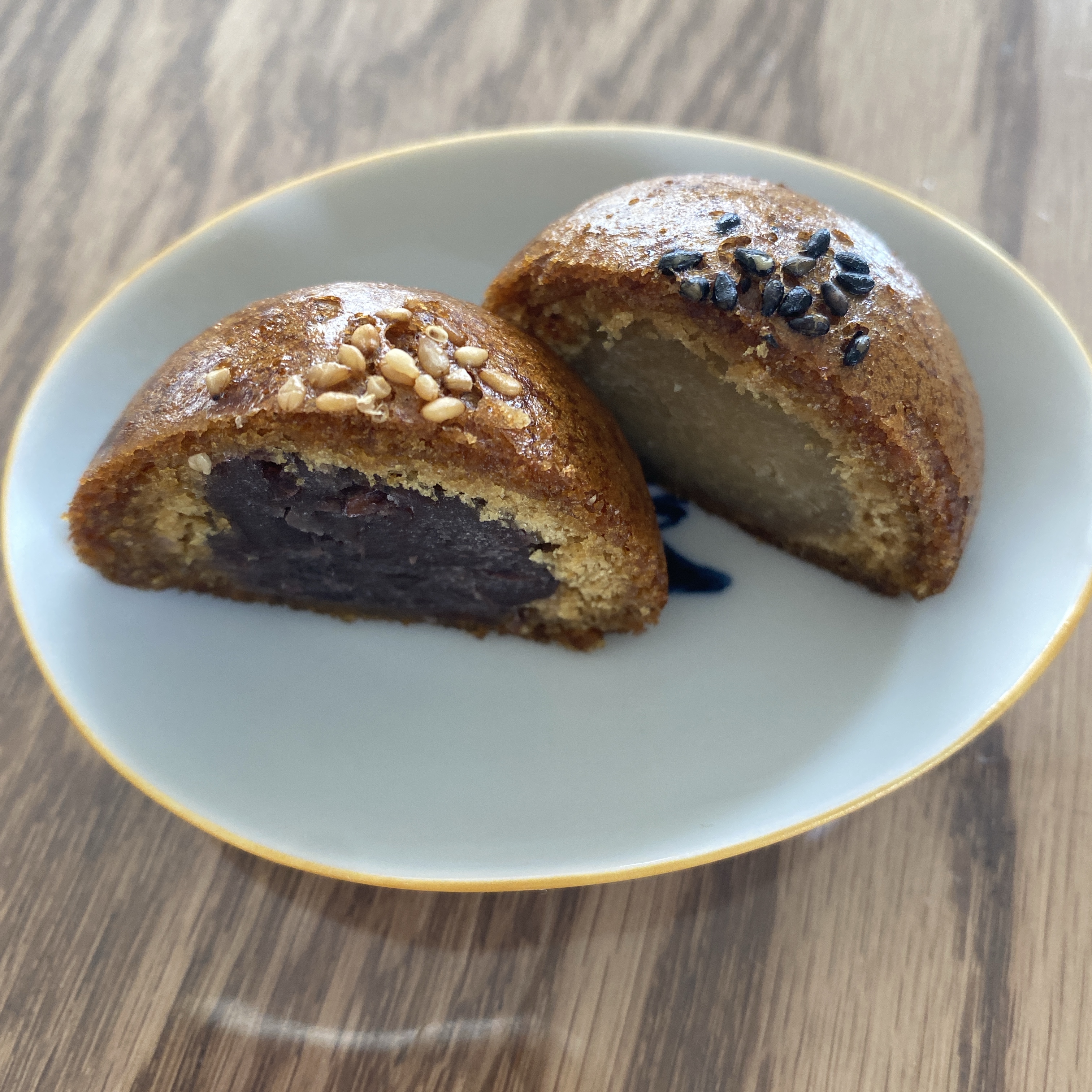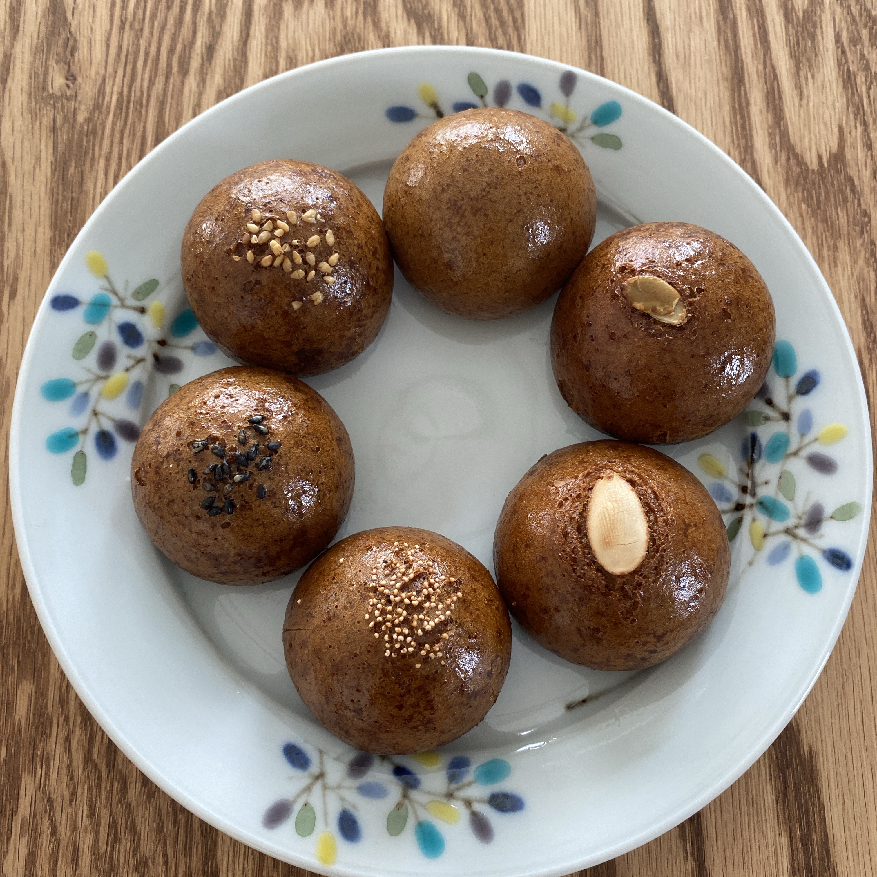 それぞれにけし、黒ゴマ、かぼちゃの種、白ゴマ、アーモンドなどがトッピングしてあり、どのあんが入っているのかがわかります。