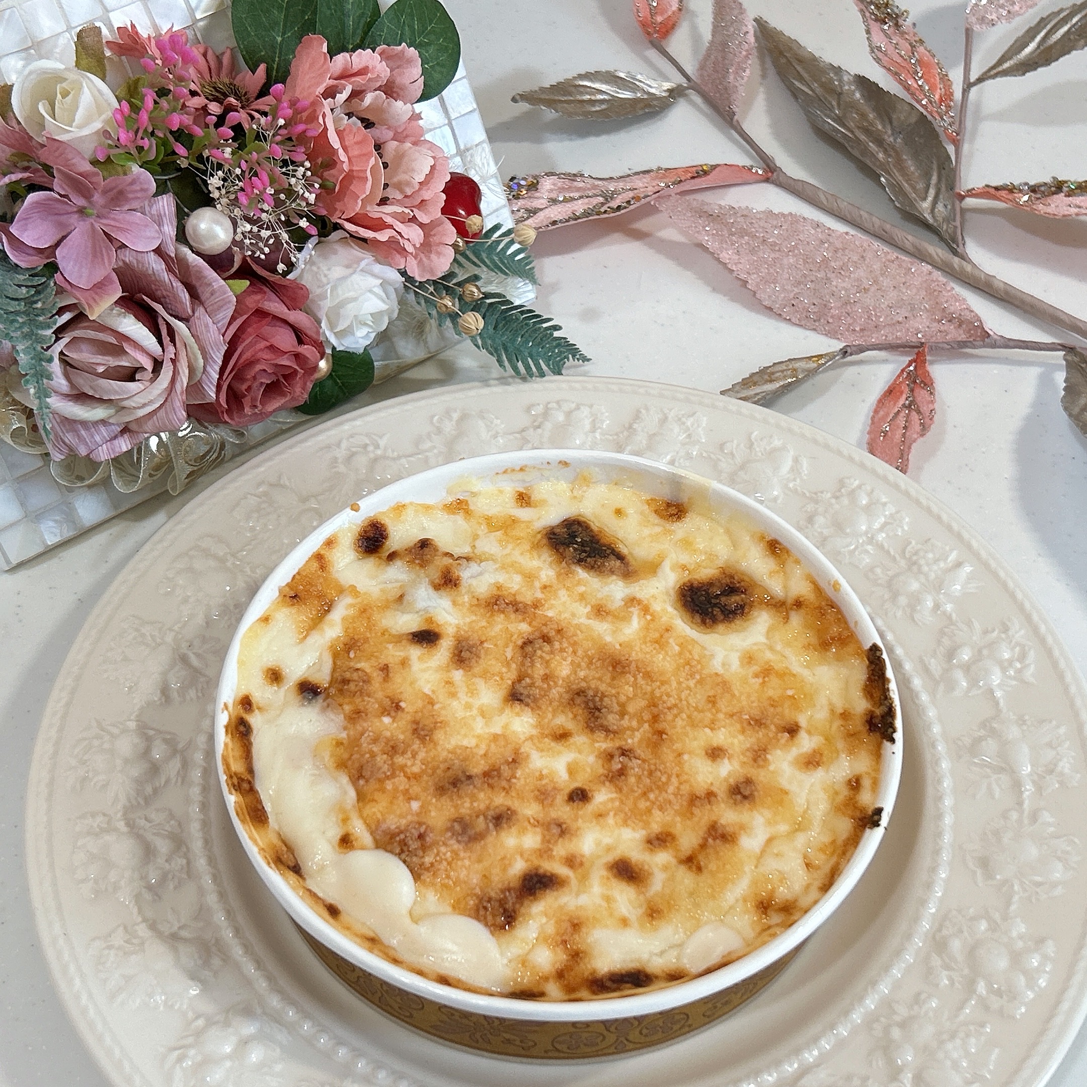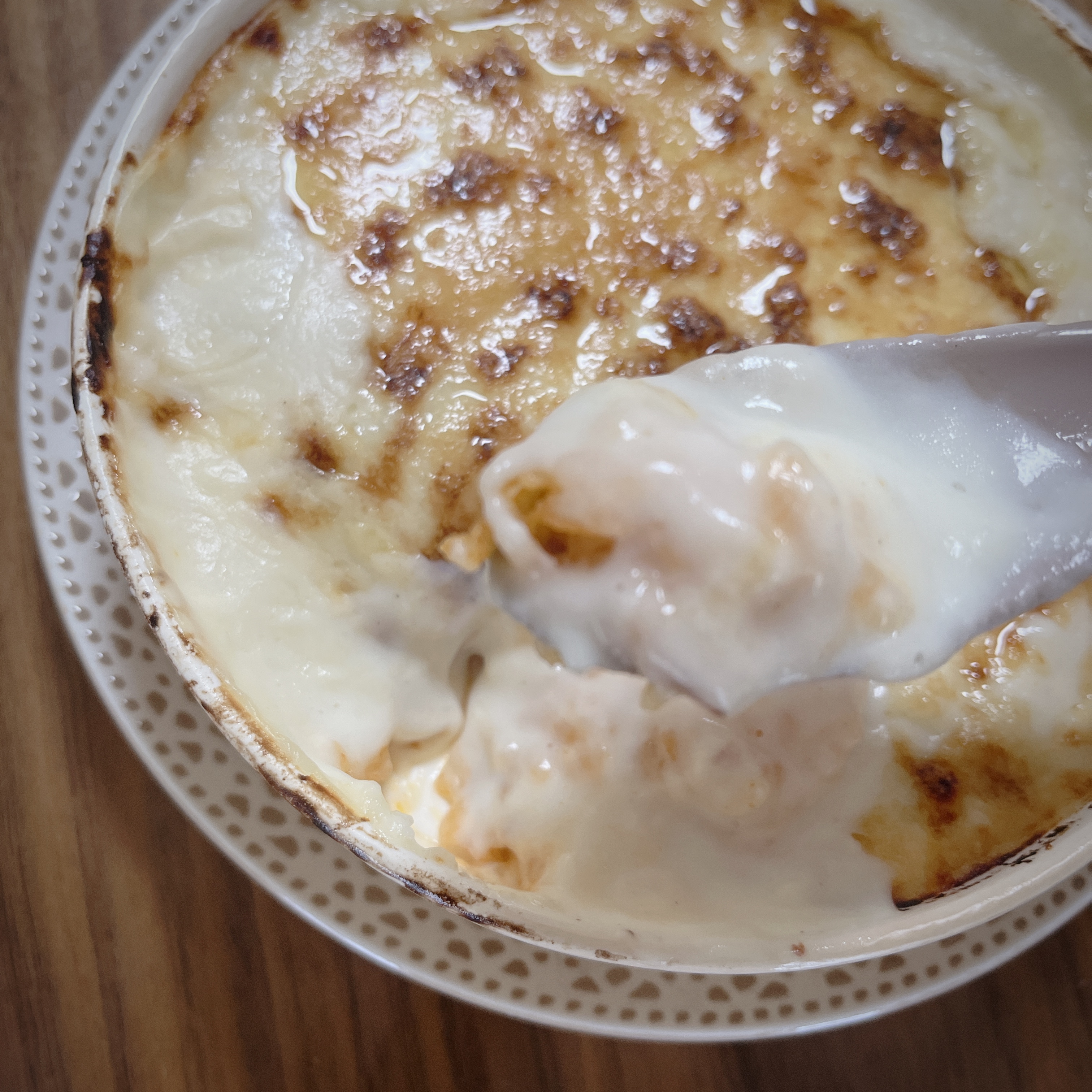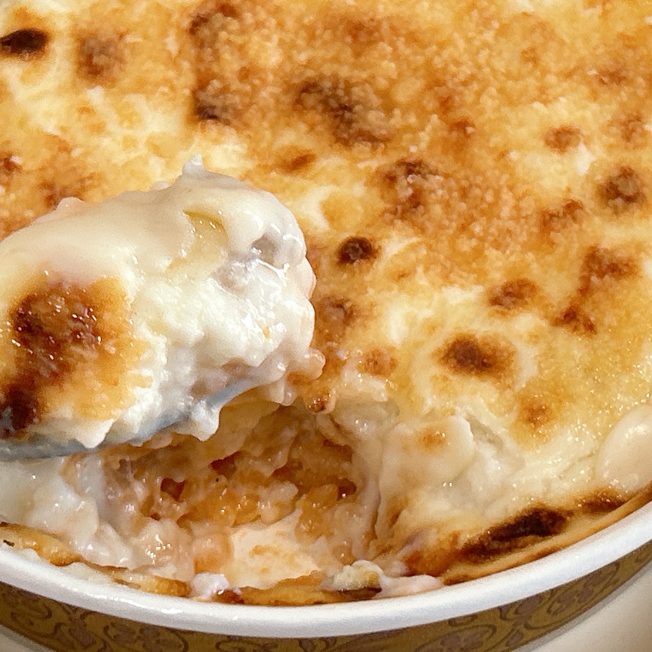 せっかくなのでより美味しい食べた方で試しました。電子レンジで温めた後、オーブントースターで3分ほど焼き上げると、これはもう出来立てのグラタンです。
