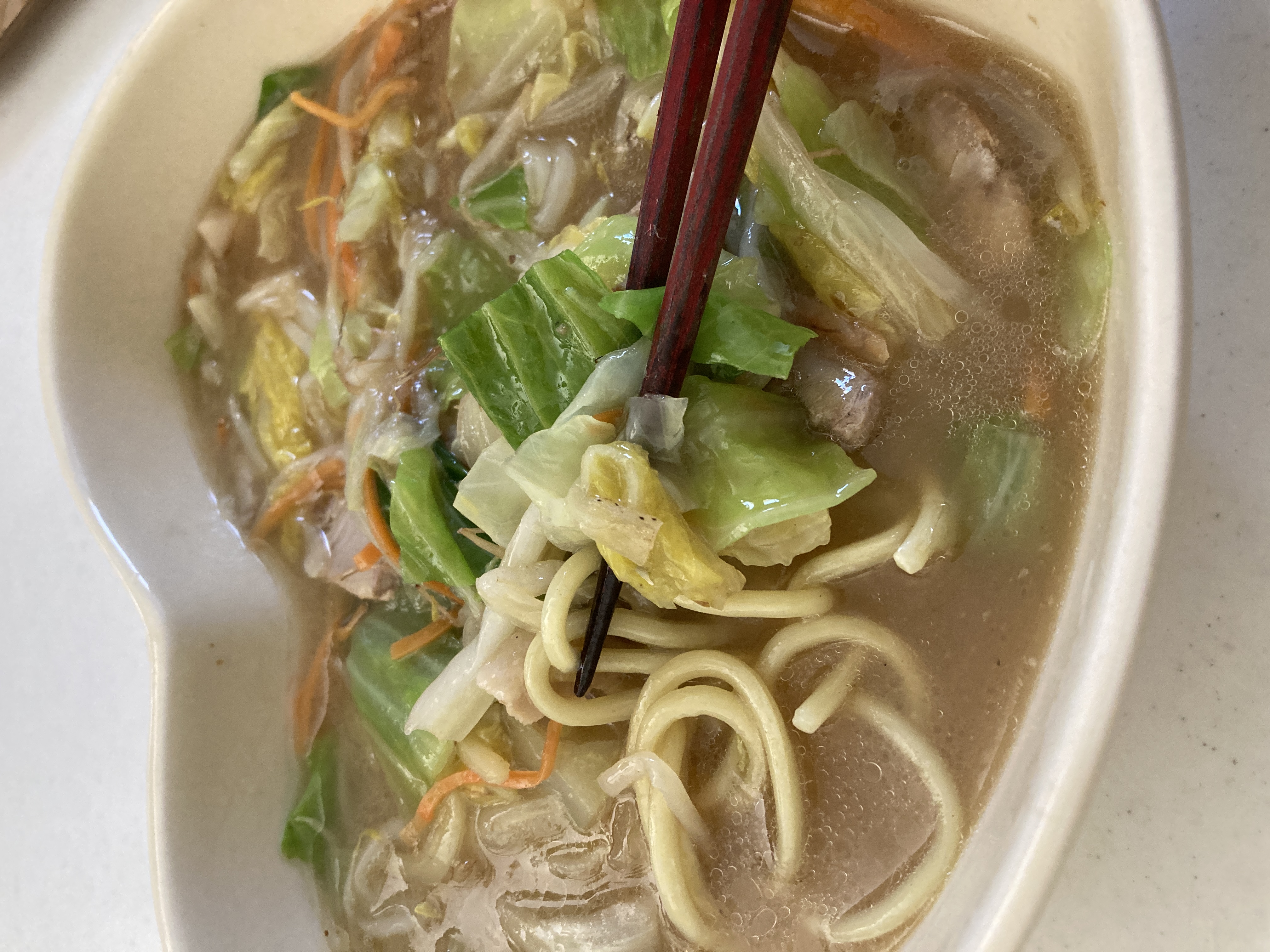 いっそ、❝天然塩ちゃんぽん鍋❞と称し、鍋料理として頂き、残った煮汁にご飯を入れて少し煮込み、溶き卵やスライスチーズを投入して煮汁も全部食べ切るっていうのも有りだと思う!絶対美味しい♪