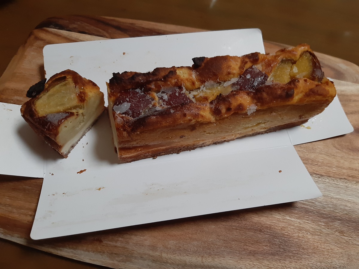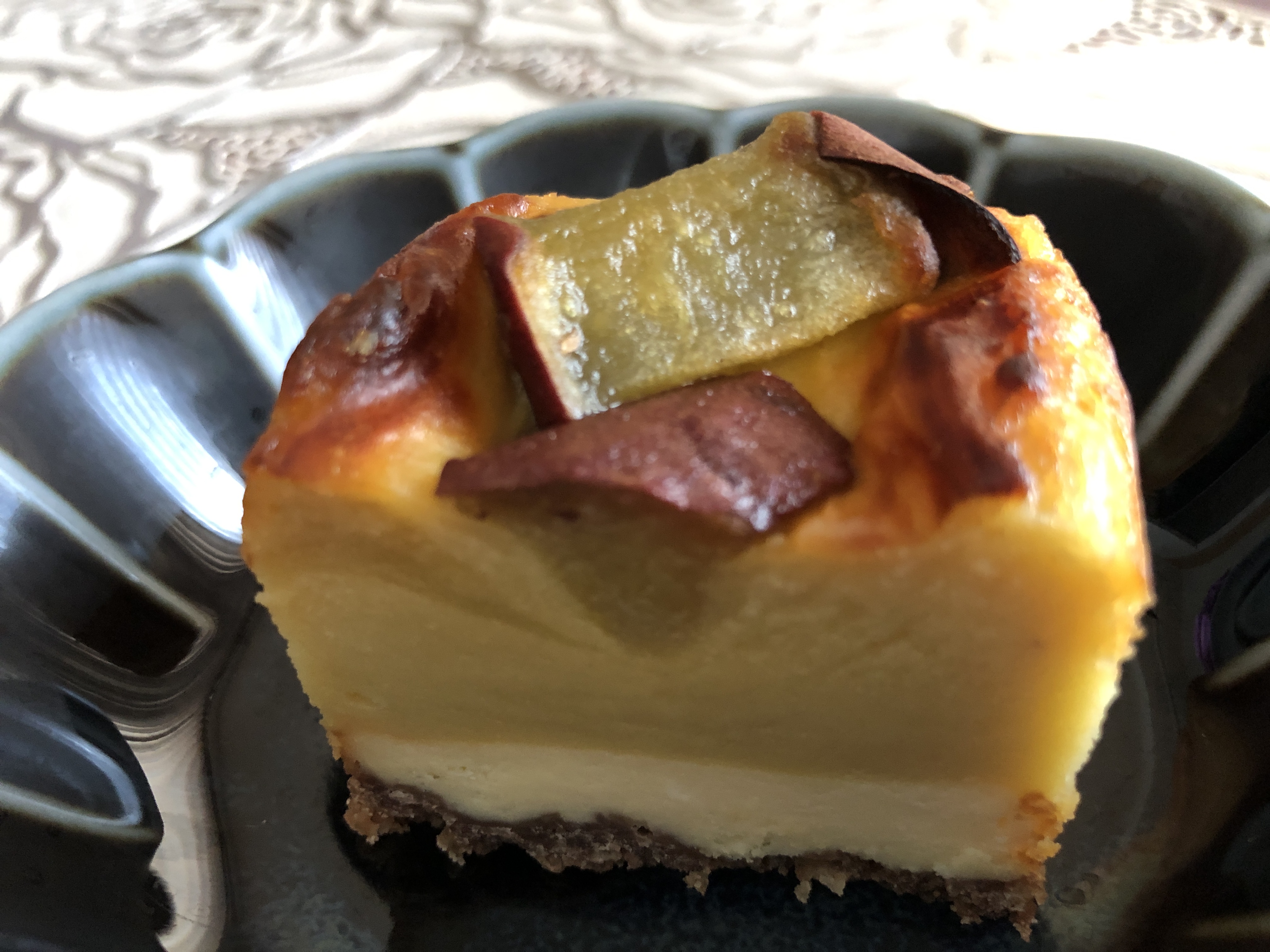 チーズケーキの層はクセがなく親しみやすい風味です。スイートポテトに洋菓子のリッチな風味が合わさることでワンランクアップした品になっています。底は薄めのタルト生地ですがサックリ食感を感じられます。スイートポテトとチーズケーキだけでも良いのに、ここにタルト生地を持ってきてくださっている点にもこだわりを感じます。