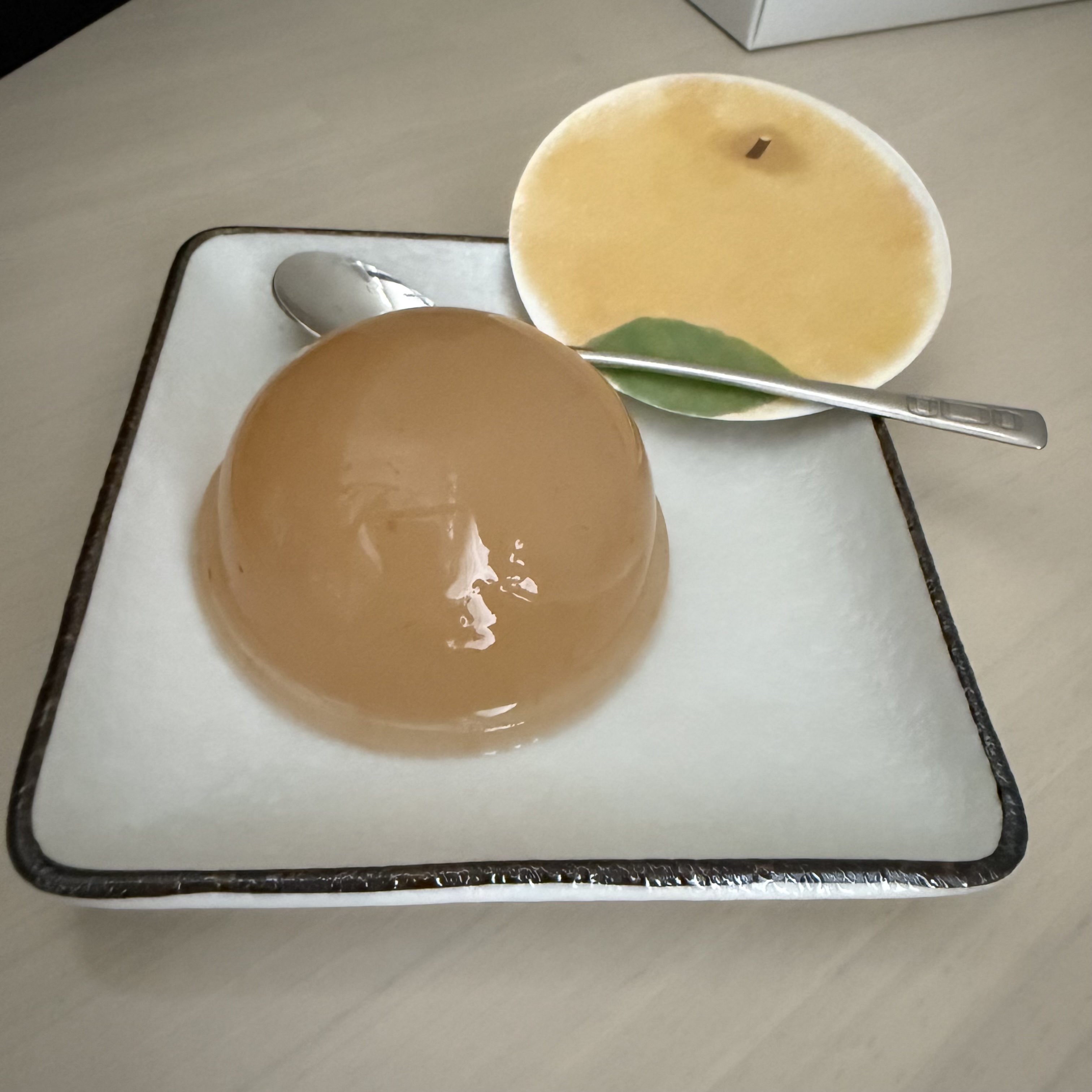 冷蔵したものは、よくあるゼリーのぷるんとした感じではなく、すりおろした梨をジュレにして固めたって感じでした。しかも、いい意味で梨を食べた時に口の中に残るようなザラつきあってゼリーなのにジューシーな梨を食べているような感覚になりました。