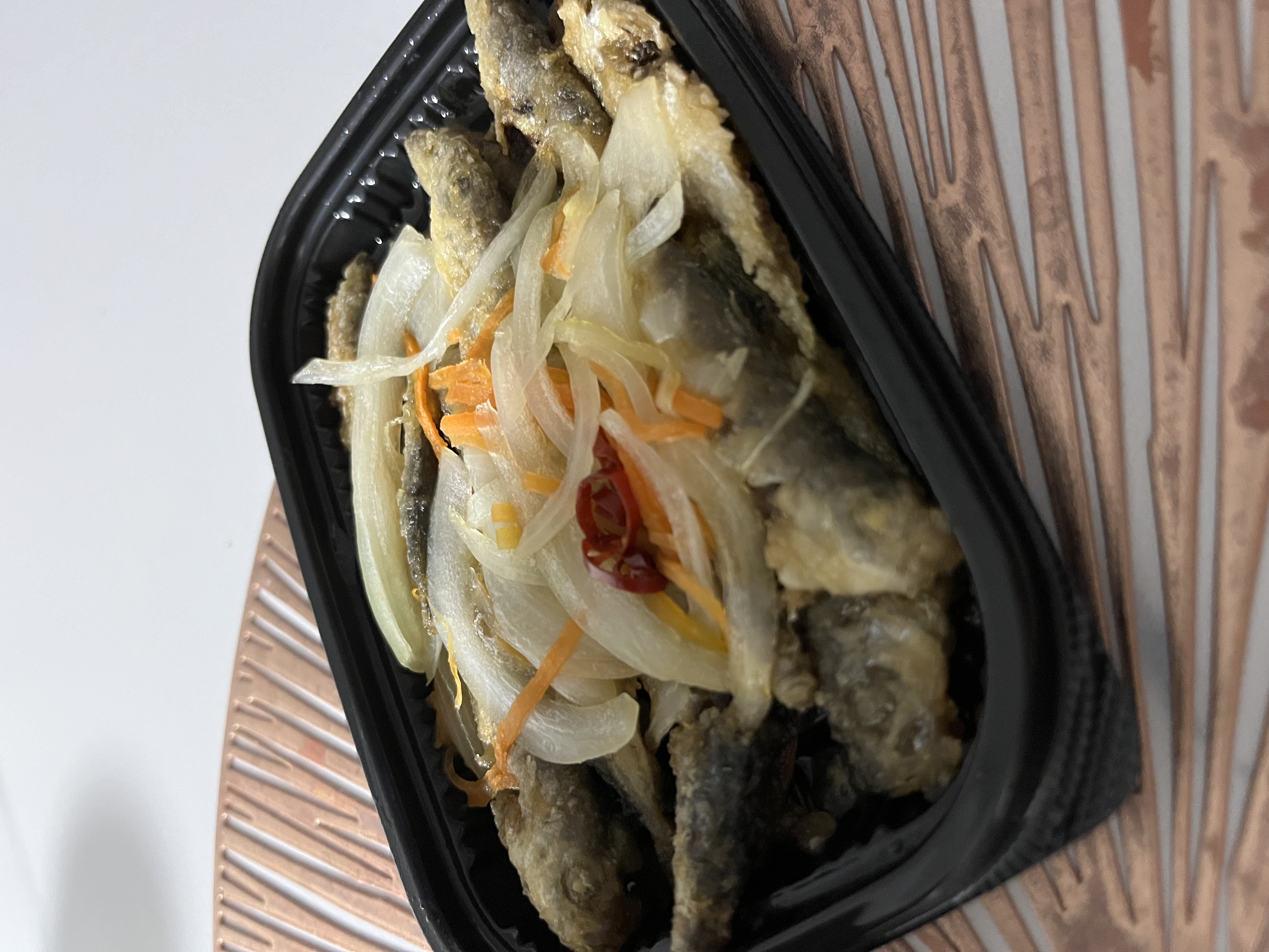 ご存知のように、小あじが揚げてあるのですが、個人的な感じとしては衣が濃かったのか粉の粒感が少しありましたが、味は美味しくてお野菜はシャキシャキしていて甘酢の味付けも良いバランスでした。