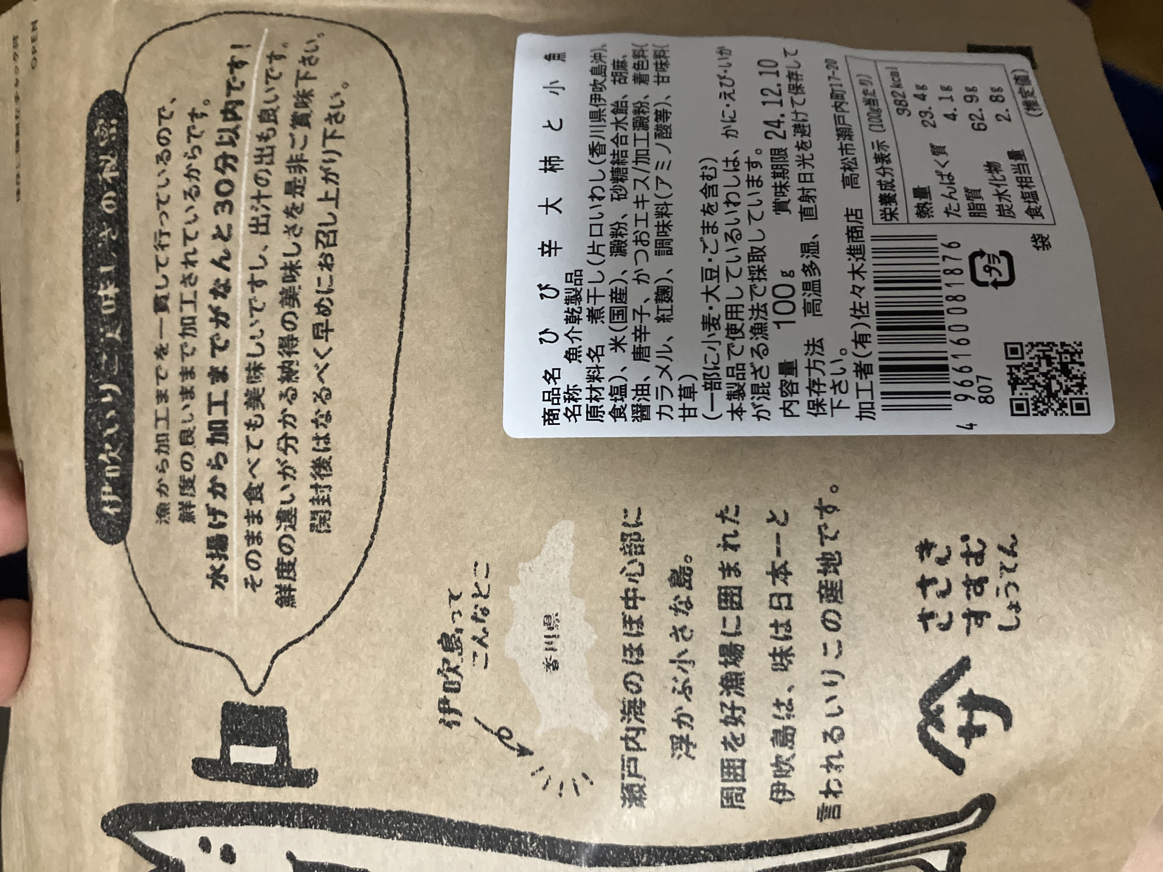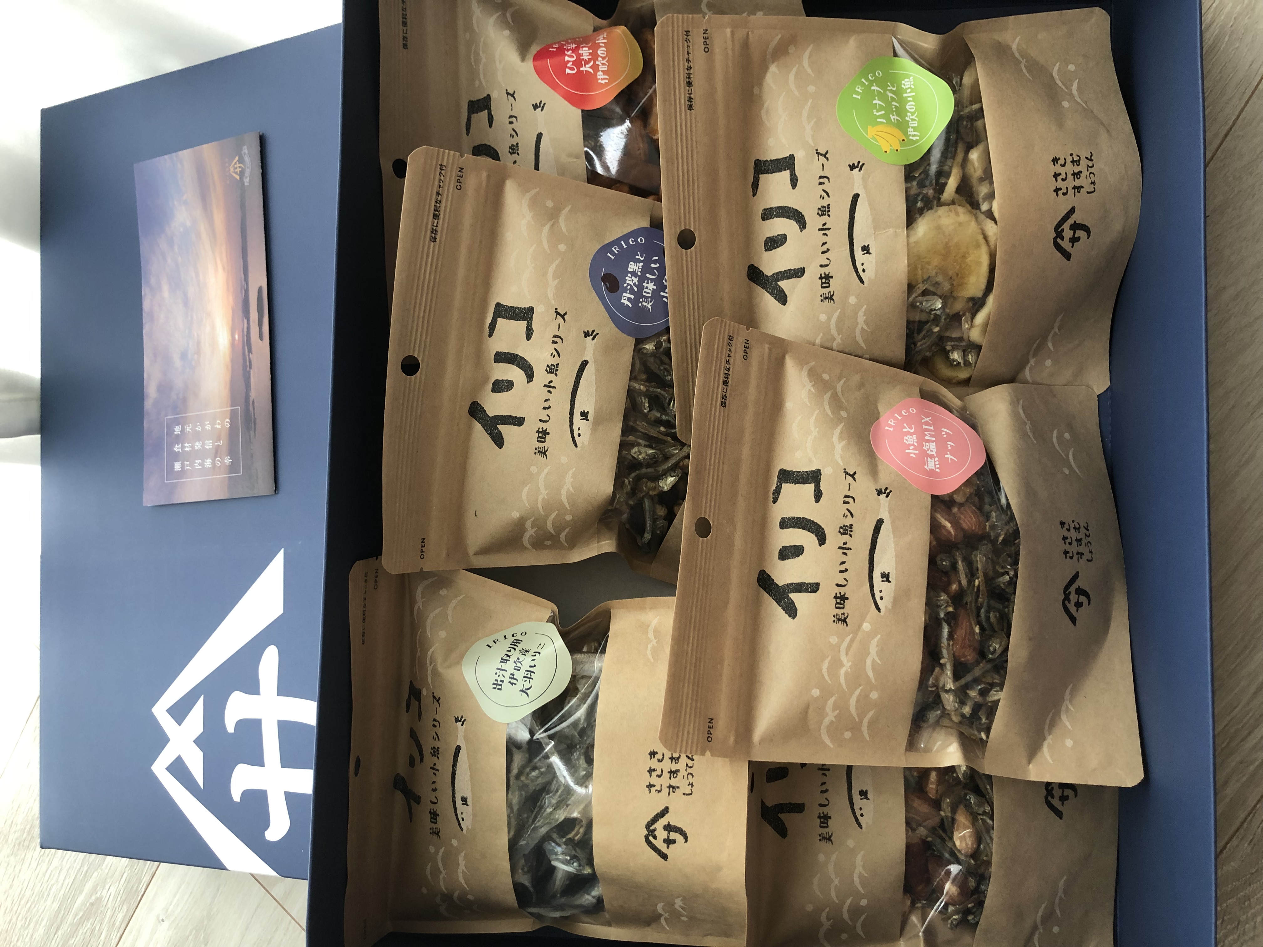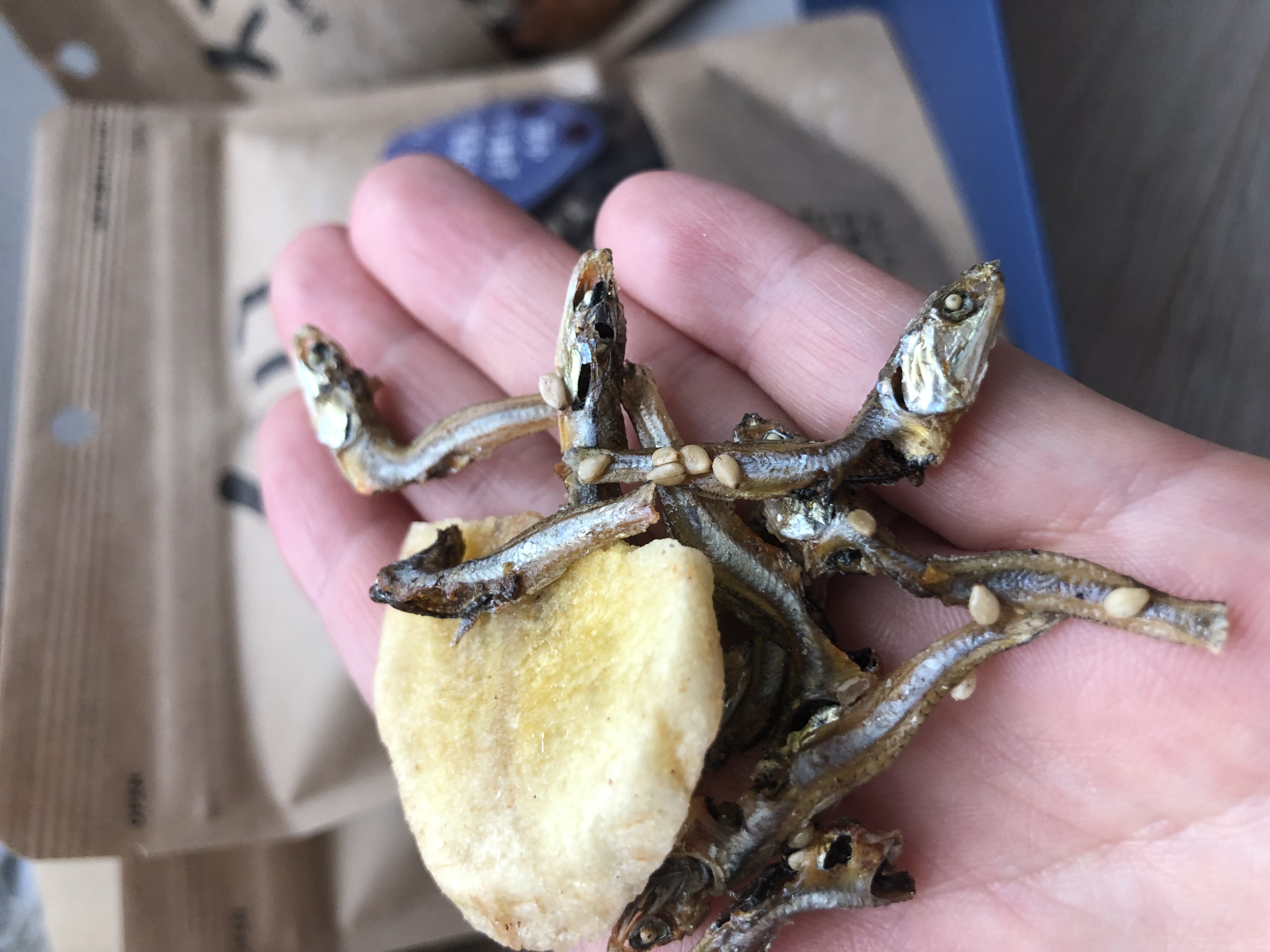 イリコの甘じょっぱさがそれぞれの味(ナッツ類、バナナチップ、大柿)とのバランスが良いことに2度びっくり。