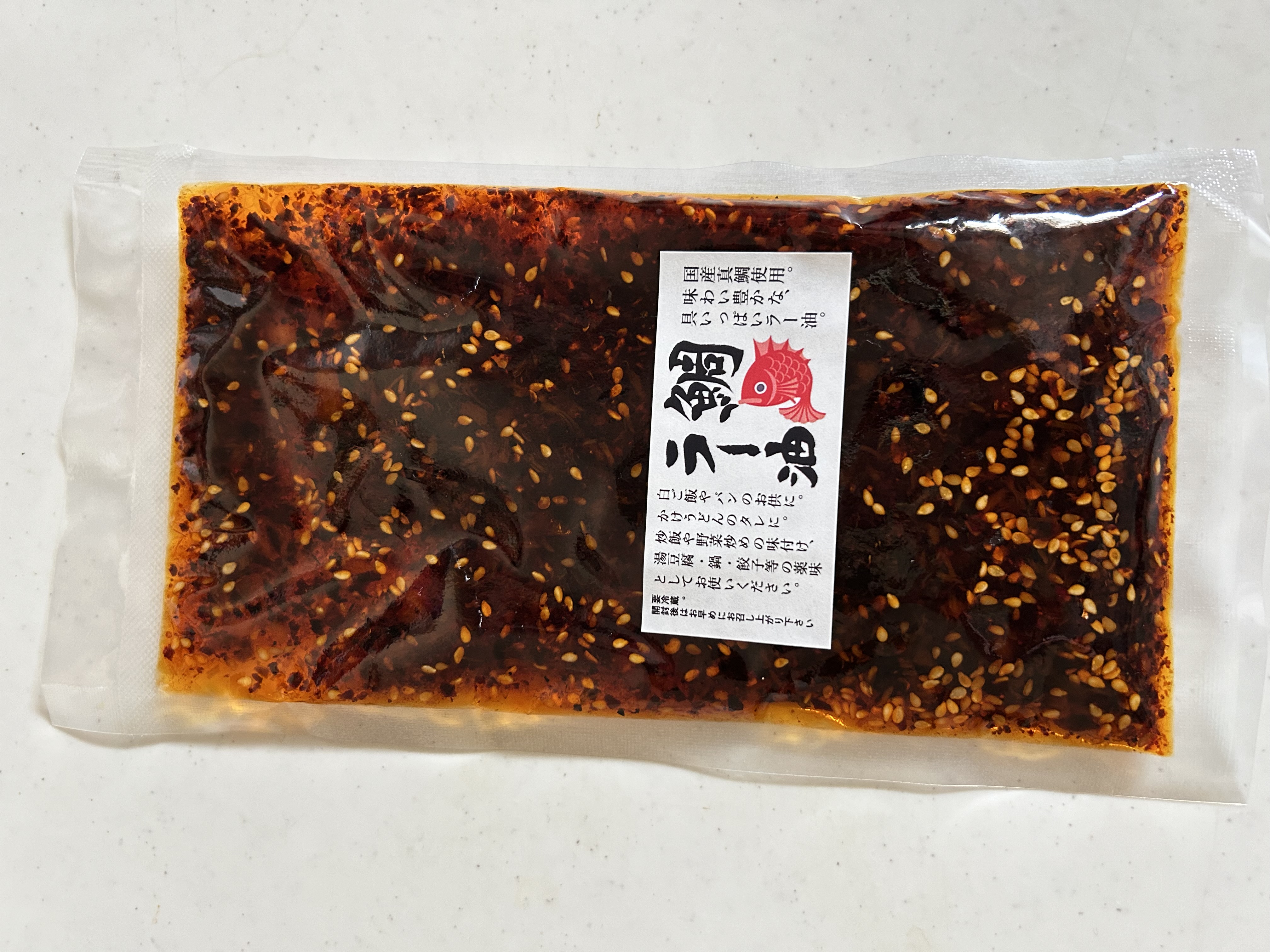 「食べるラー油」を食べるのは初めてだったのですが、辛すぎず、国産真鯛や、唐辛子・玉ねぎなどの香味野菜・花椒などの香辛料の旨味がつまっていて、おいしかったです!